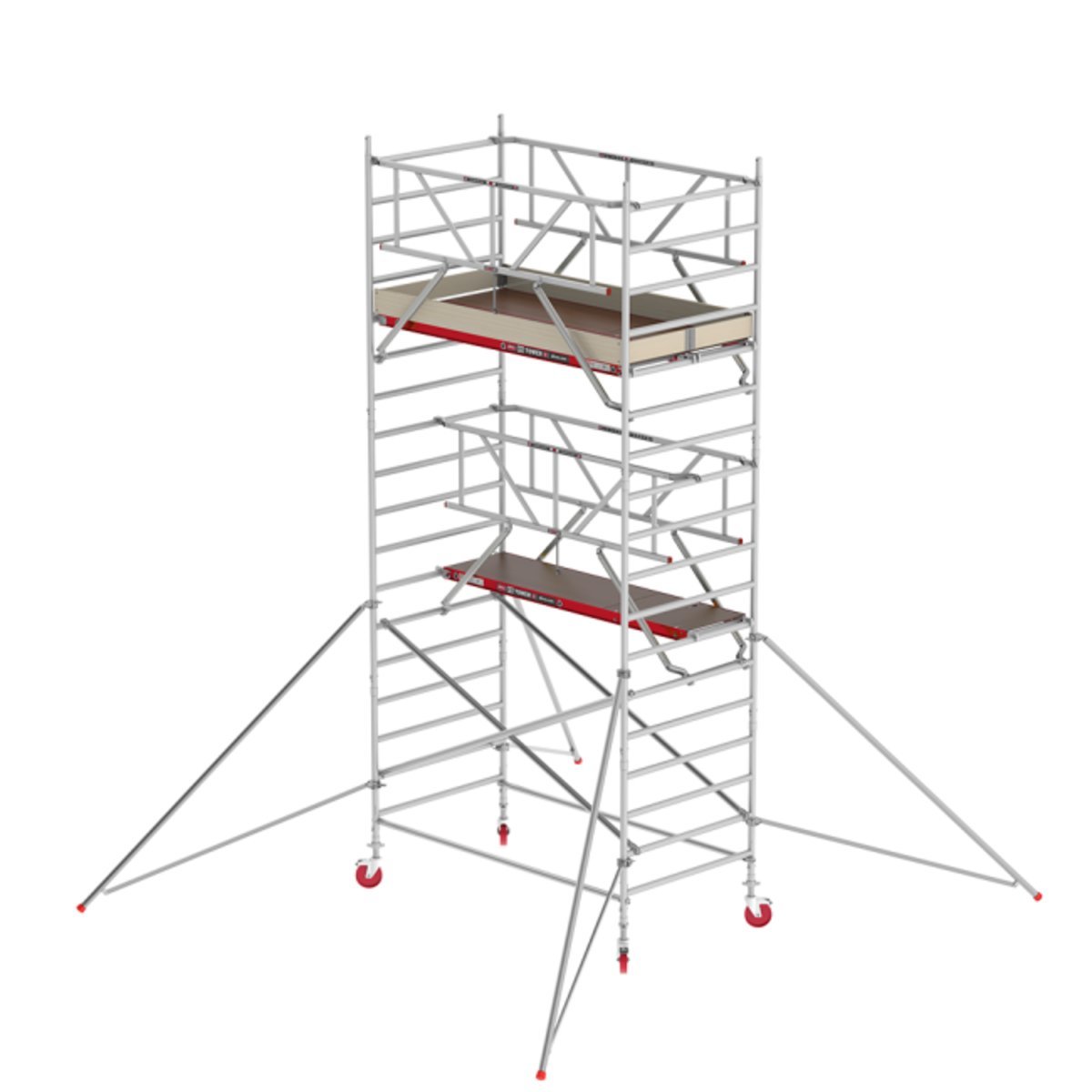 Breite Fahrgerüste haben einen Rahmen von 1,35 Metern. Das heißt, dass zwei Plattformen nebeneinander liegen können. Dadurch erhalten Sie eine größere Arbeitsfläche.