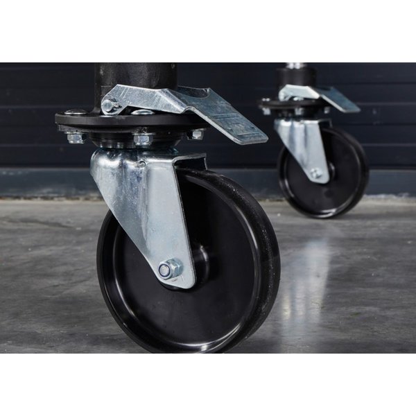 Mit den Doppelstopp-Lenkrollen steht Ihr Fahrgerüst sicher und stabil an einer Stelle. Die Bremse kann leicht von Hand gelöst werden. Die Lenkrollen sind bis zu 25 cm höhenverstellbar (spindelbar).