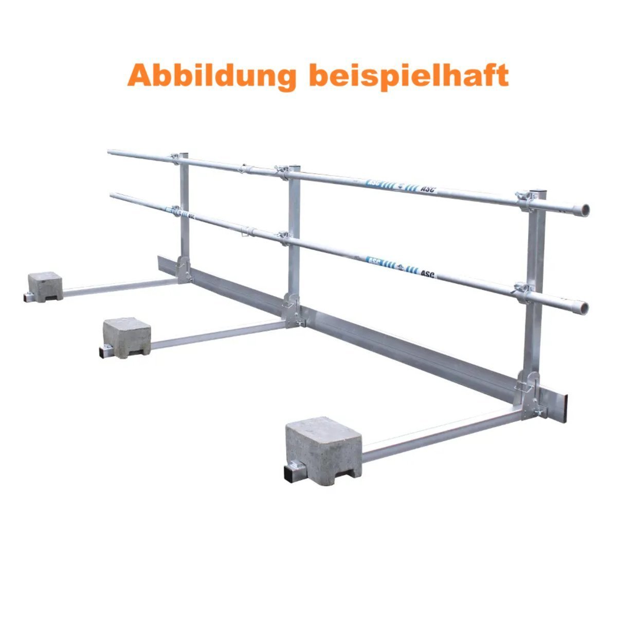 Die klappbare Flachdach-Absturzsicherung DKO wurde von ASC in Eigenentwicklung unter Verwendung von Standard-Gerüstmaterial und modernster Verbindungstechnologie konzipiert. Dieses System bietet eine benutzerfreundliche Lösung, um Flachdächer zu einer sicheren Arbeitsumgebung zu machen. Die äußerst robuste Aluminium-Kupplung fungiert als Pfostenklemme am klappbaren Dachrandsockel. Das Geländer besteht aus einem 3 mm starken Aluminiumprofil und vereint geringes Gewicht mit höchster Stabilität.