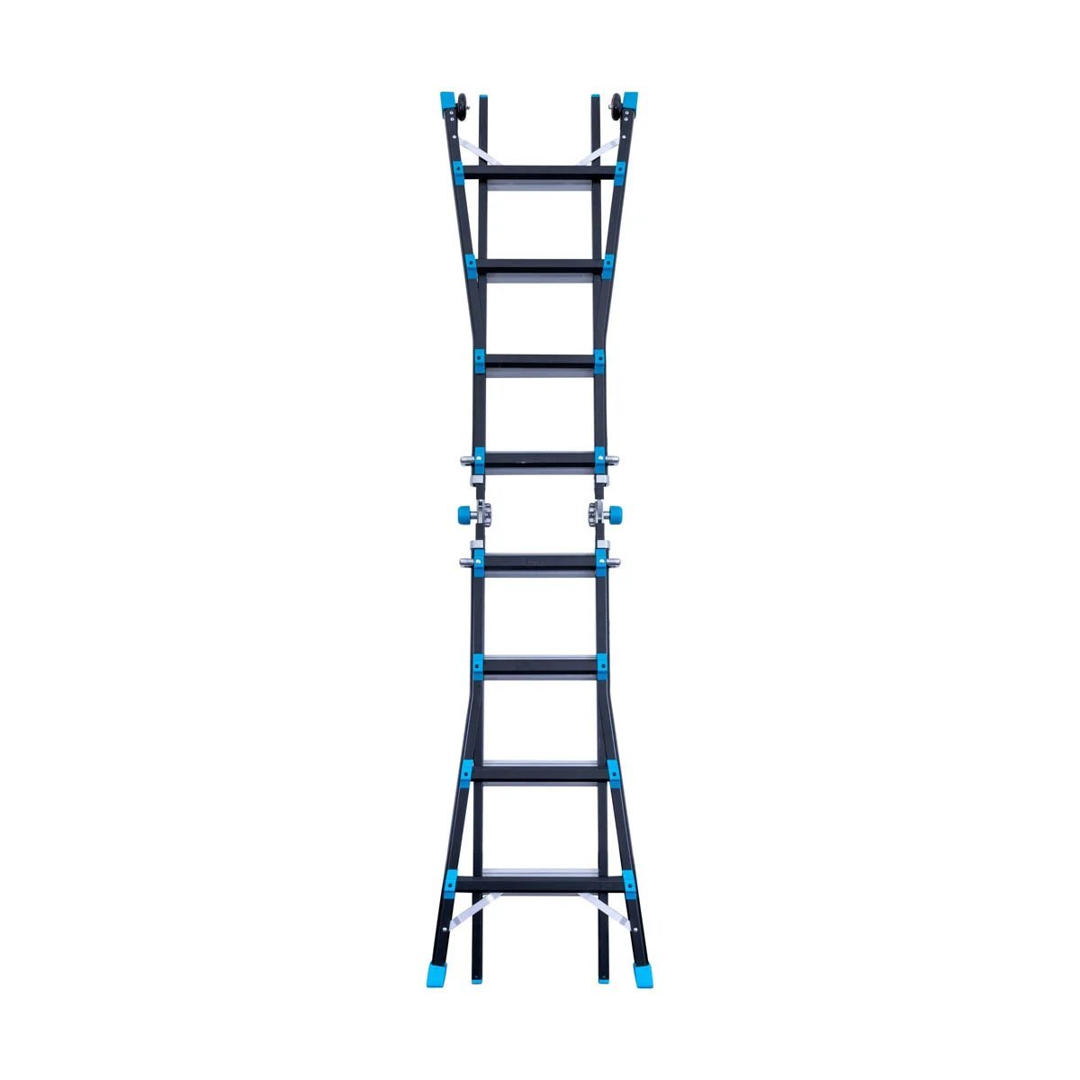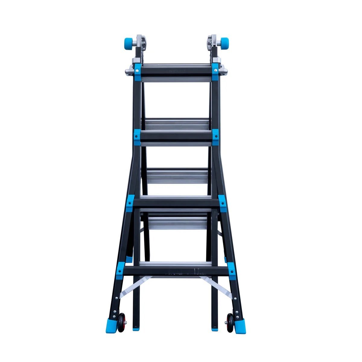 Die Teleskopleiter von Eurostairs richtet sich speziell an anspruchsvolle Profis, die höchsten Wert auf Qualität legen. Sie überzeugt durch eine makellose Verarbeitung und lackierte Holme, die Aluminiumabrieb an den Händen verhindern. Teleskop-Aufstelleitern bieten einzigartige Eigenschaften, die sie bei Anwendern besonders beliebt machen. Durch das zentrale Klappgelenk lässt sich die Leiter mühelos von einer Stehleiter in eine lange Anlegeleiter verwandeln und umgekehrt. Dieses Profi-Modell ermöglicht zudem den sicheren Einsatz auf unterschiedlichen Ebenen, wie zum Beispiel auf Treppen. Alle Verriegelungsmechanismen sind für den intensiven Dauereinsatz konzipiert. Die Konstruktion ist so stabil, dass keine horizontale Verbindung zwischen den beiden Leiterteilen erforderlich ist.
