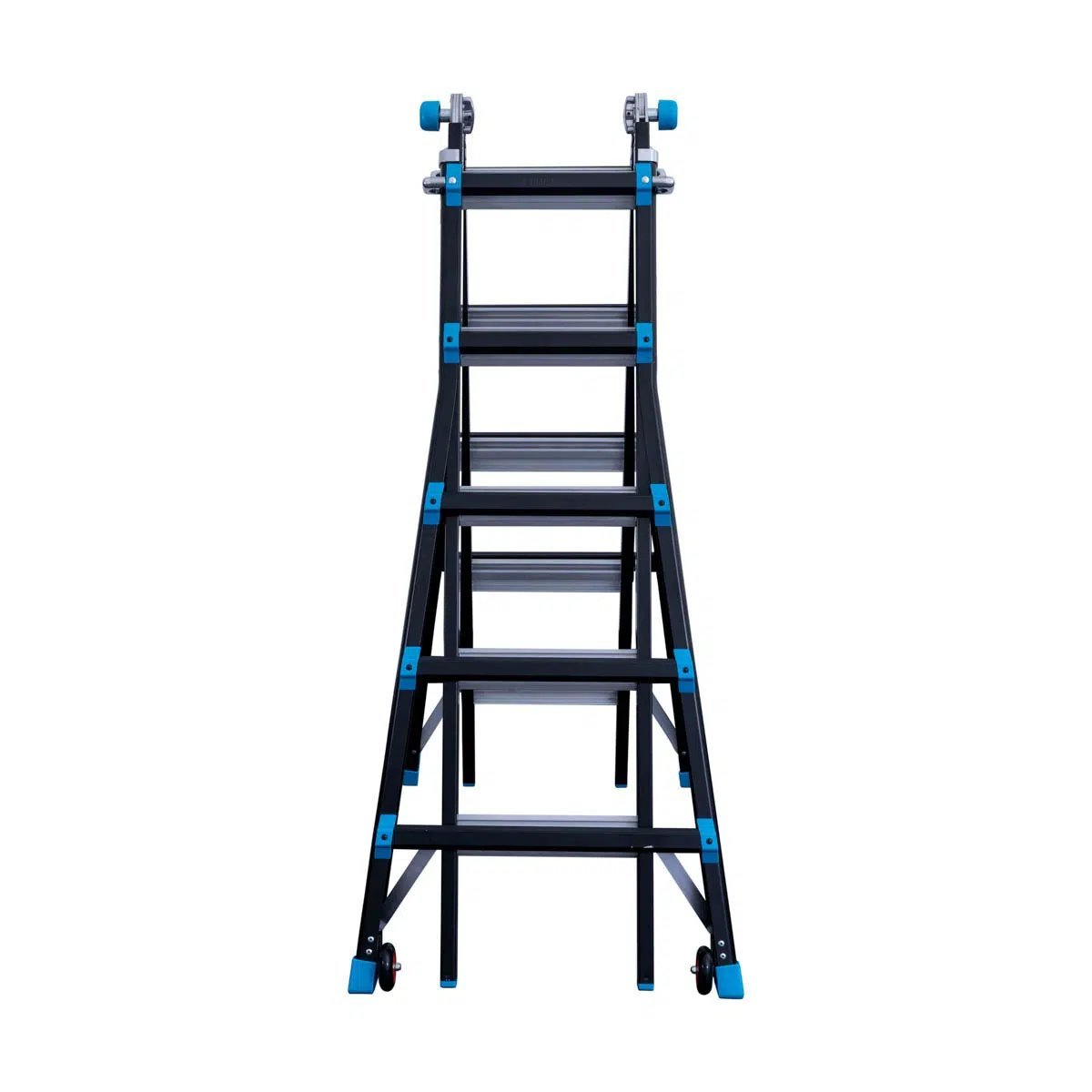Die Teleskopleiter von Eurostairs richtet sich speziell an anspruchsvolle Profis, die höchsten Wert auf Qualität legen. Sie überzeugt durch eine makellose Verarbeitung und lackierte Holme, die Aluminiumabrieb an den Händen verhindern. Teleskop-Aufstelleitern bieten einzigartige Eigenschaften, die sie bei Anwendern besonders beliebt machen. Durch das zentrale Klappgelenk lässt sich die Leiter mühelos von einer Stehleiter in eine lange Anlegeleiter verwandeln und umgekehrt. Dieses Profi-Modell ermöglicht zudem den sicheren Einsatz auf unterschiedlichen Ebenen, wie zum Beispiel auf Treppen. Alle Verriegelungsmechanismen sind für den intensiven Dauereinsatz konzipiert. Die Konstruktion ist so stabil, dass keine horizontale Verbindung zwischen den beiden Leiterteilen erforderlich ist.
