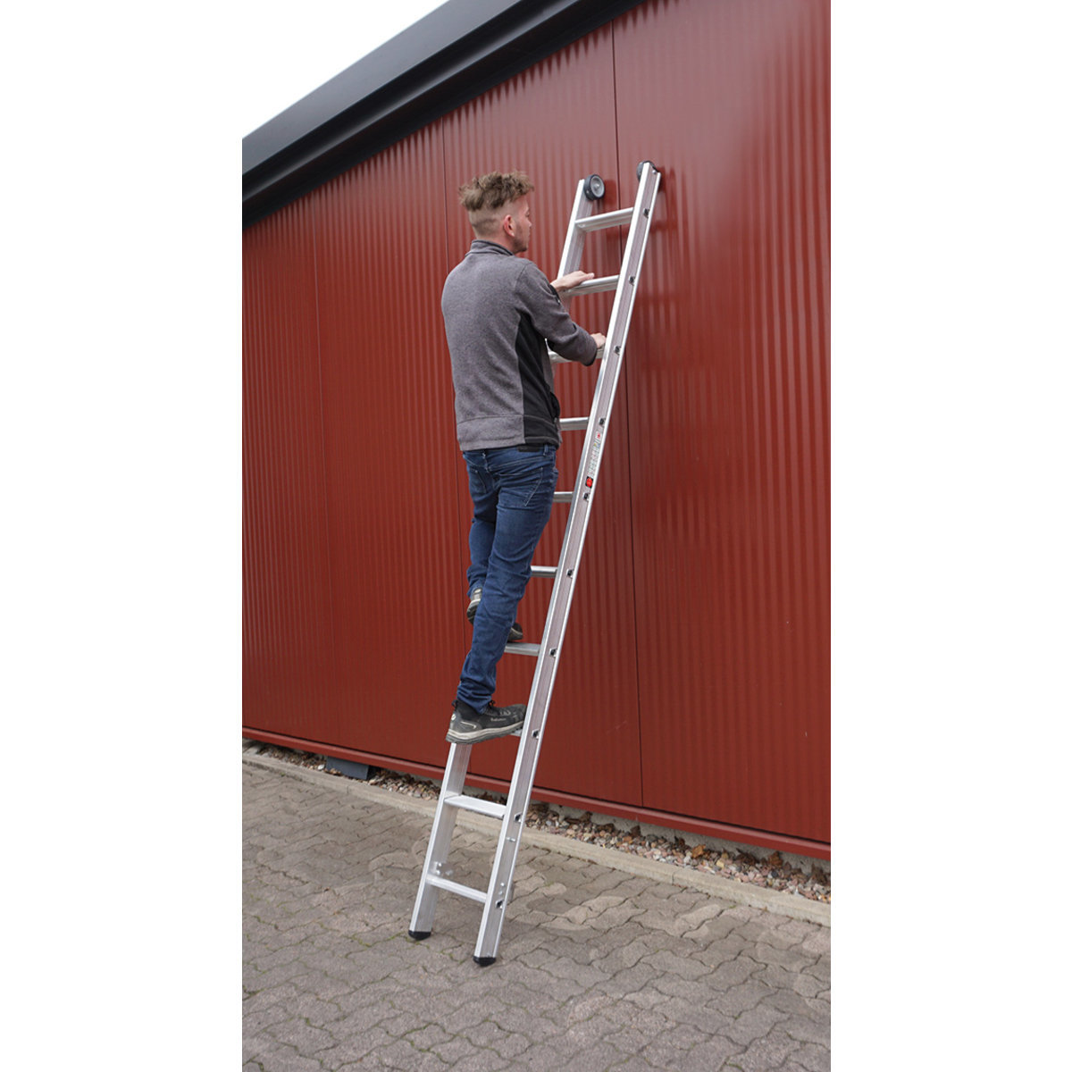 Eine Leiter - viele Einsatzmöglichkeiten: Als Anlegeleiter, Stehleiter und Schiebeleiter