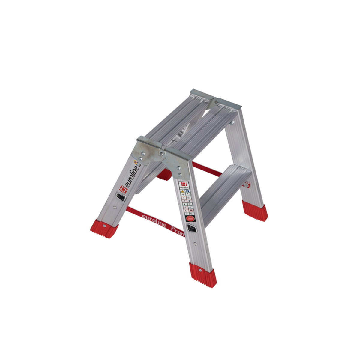 Alu-Stufenstehleiter beidseitig begehbar, mit 2x2 Stufen