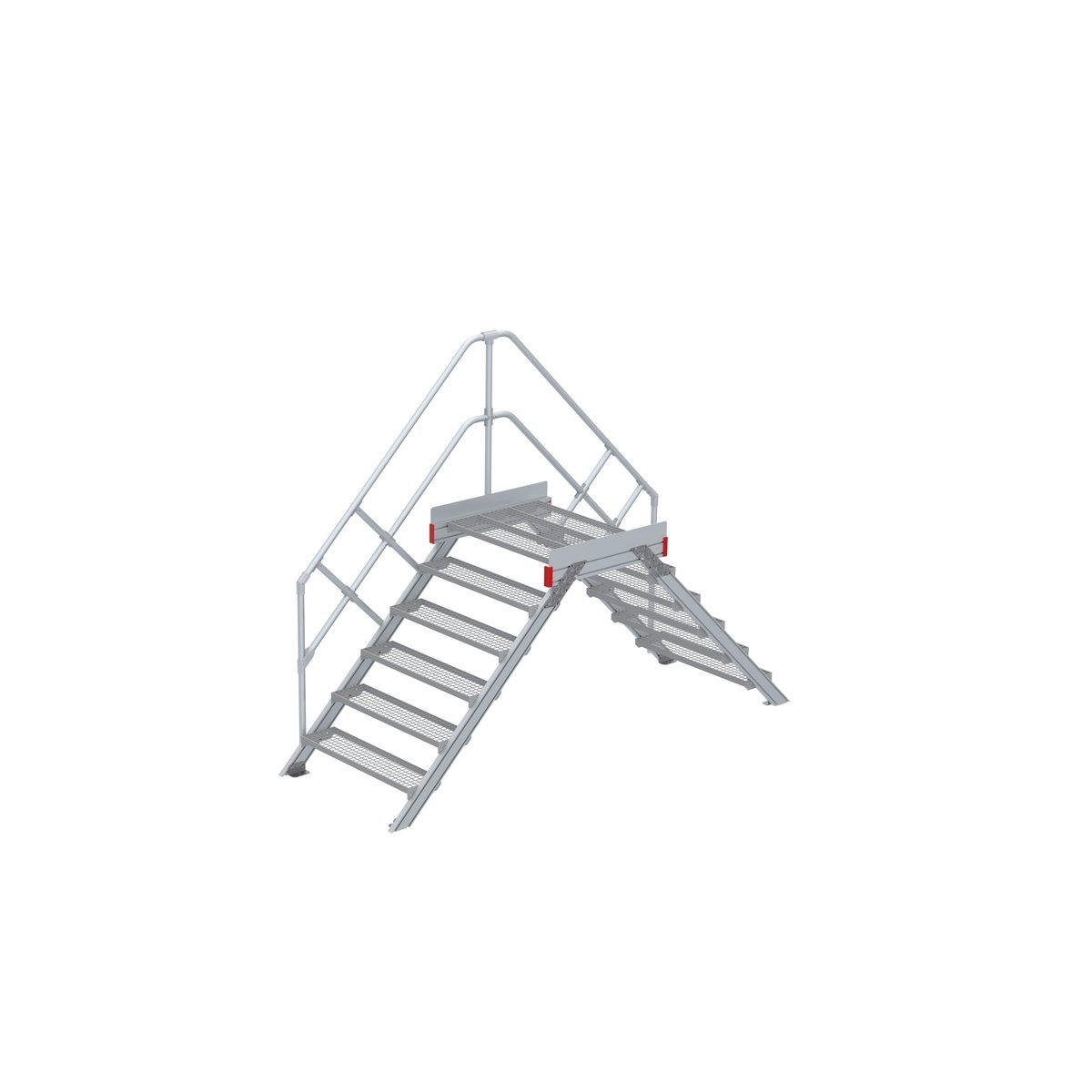 Überstieg 45 Grad, 1000 mm Stufenbreite, 1 Treppen-/Podestgeländer, Stufenausführung Stahl – Gitterrost