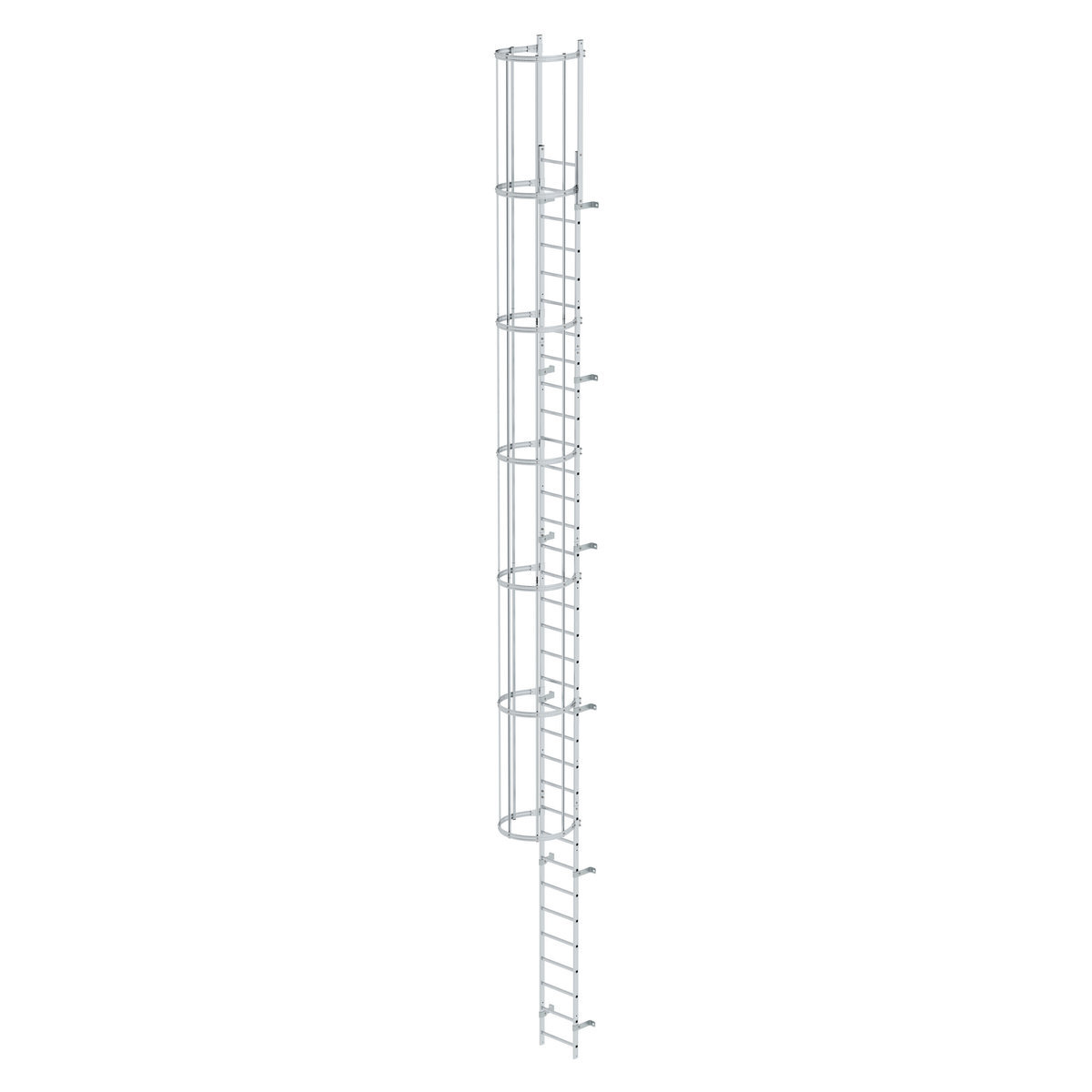 Einzügige Steigleiter mit Rückenschutz Aluminium blank
