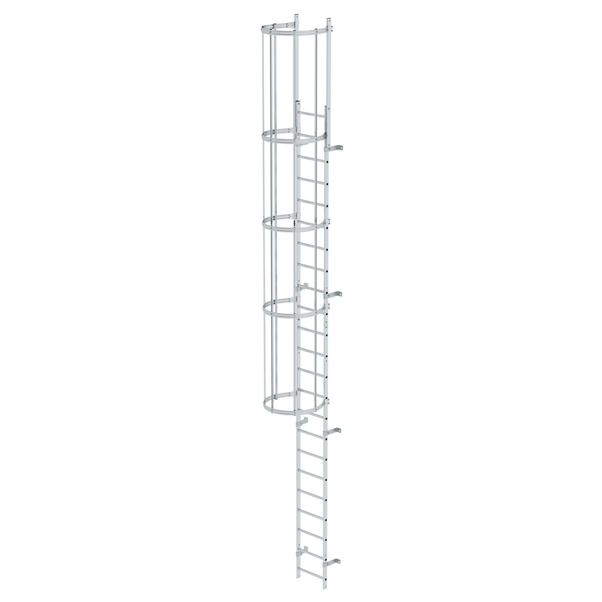 Einzügige Steigleiter mit Rückenschutz Aluminium blank