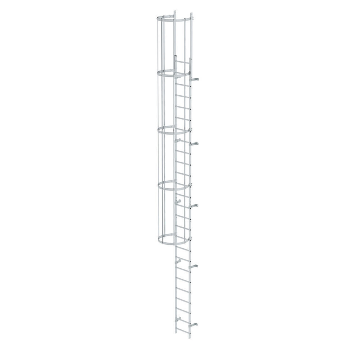 Einzügige Steigleiter mit Rückenschutz Aluminium blank