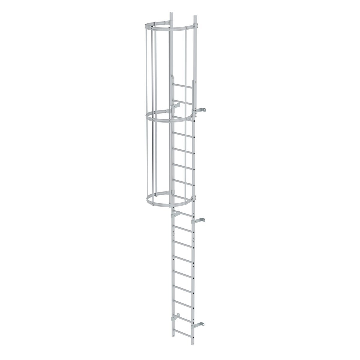 Einzügige Steigleiter mit Rückenschutz Aluminium eloxiert