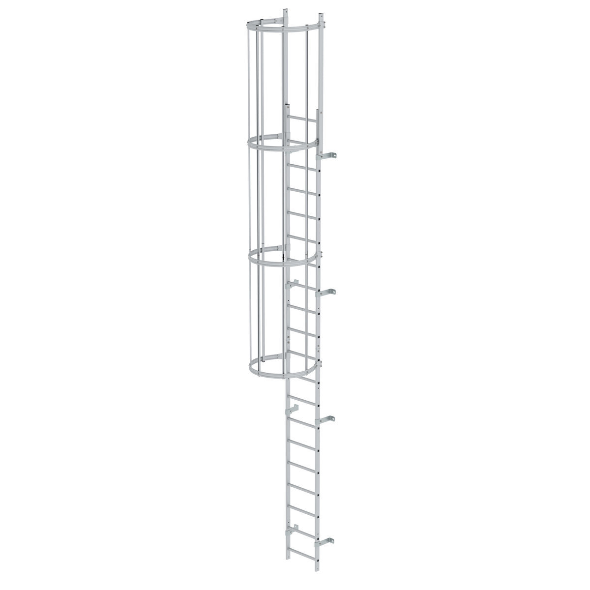 Einzügige Steigleiter mit Rückenschutz Aluminium eloxiert