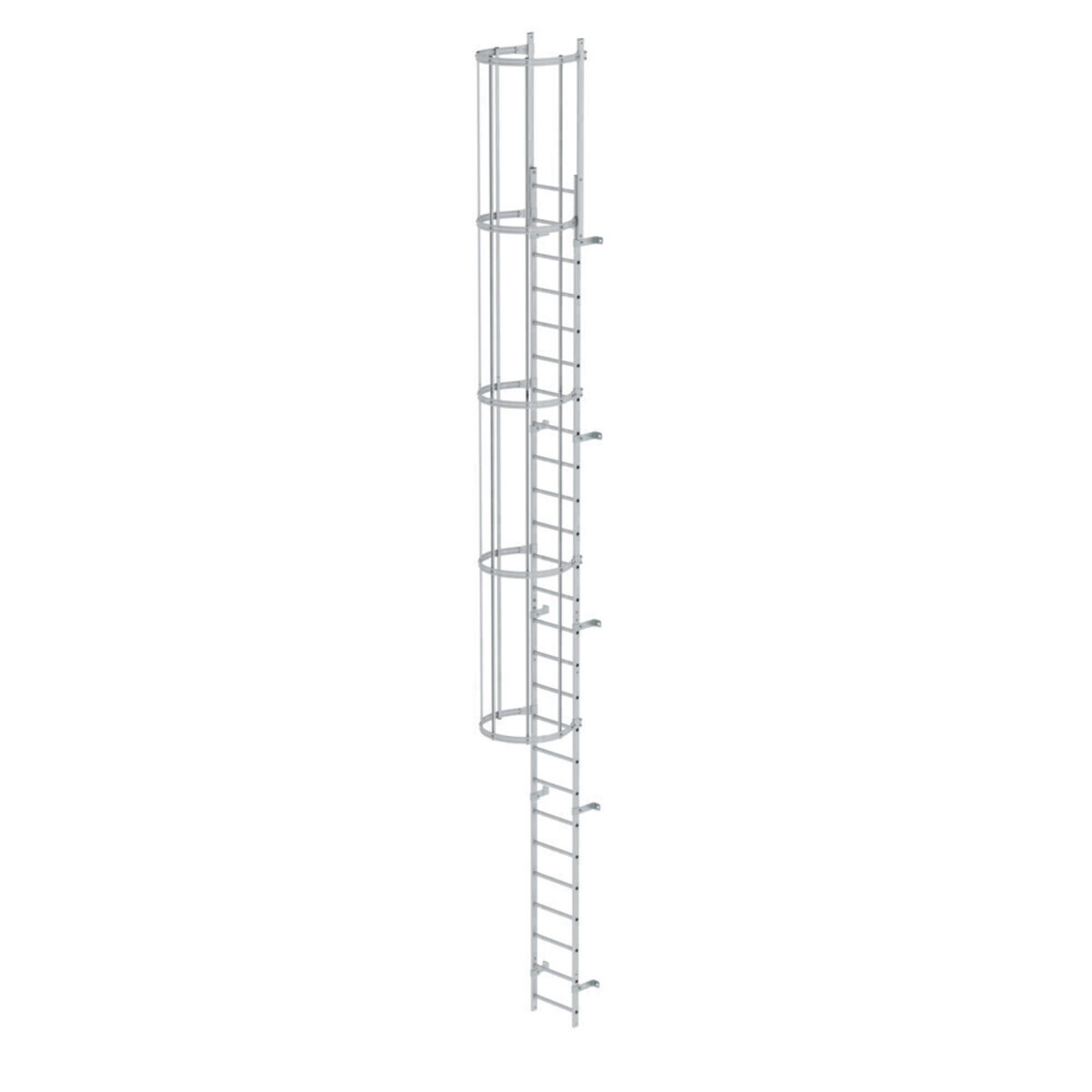 Einzügige Steigleiter mit Rückenschutz Aluminium eloxiert
