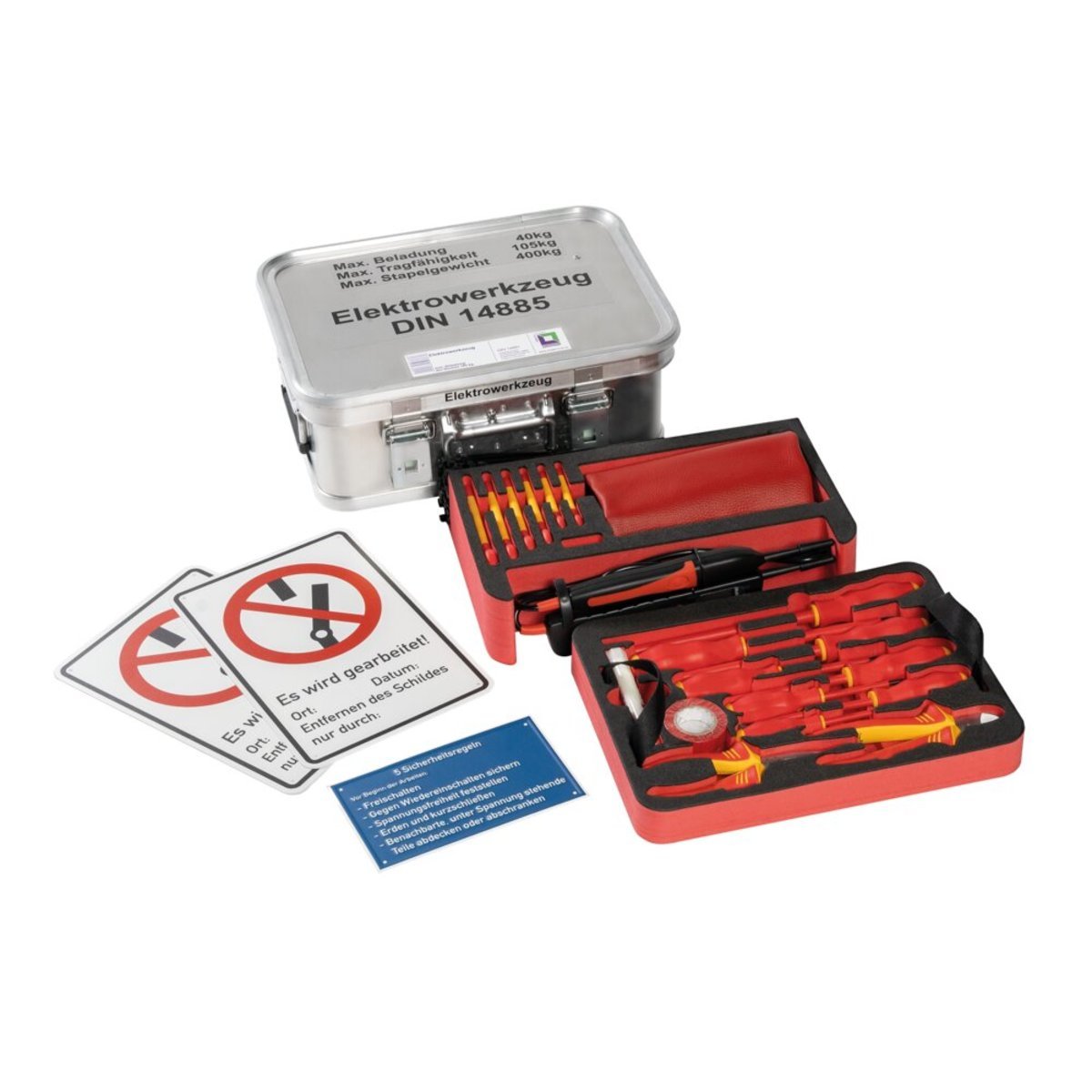 Kasten mit Einlagen und Inhalt "Elektrowerkzeugsatz" Größe 4