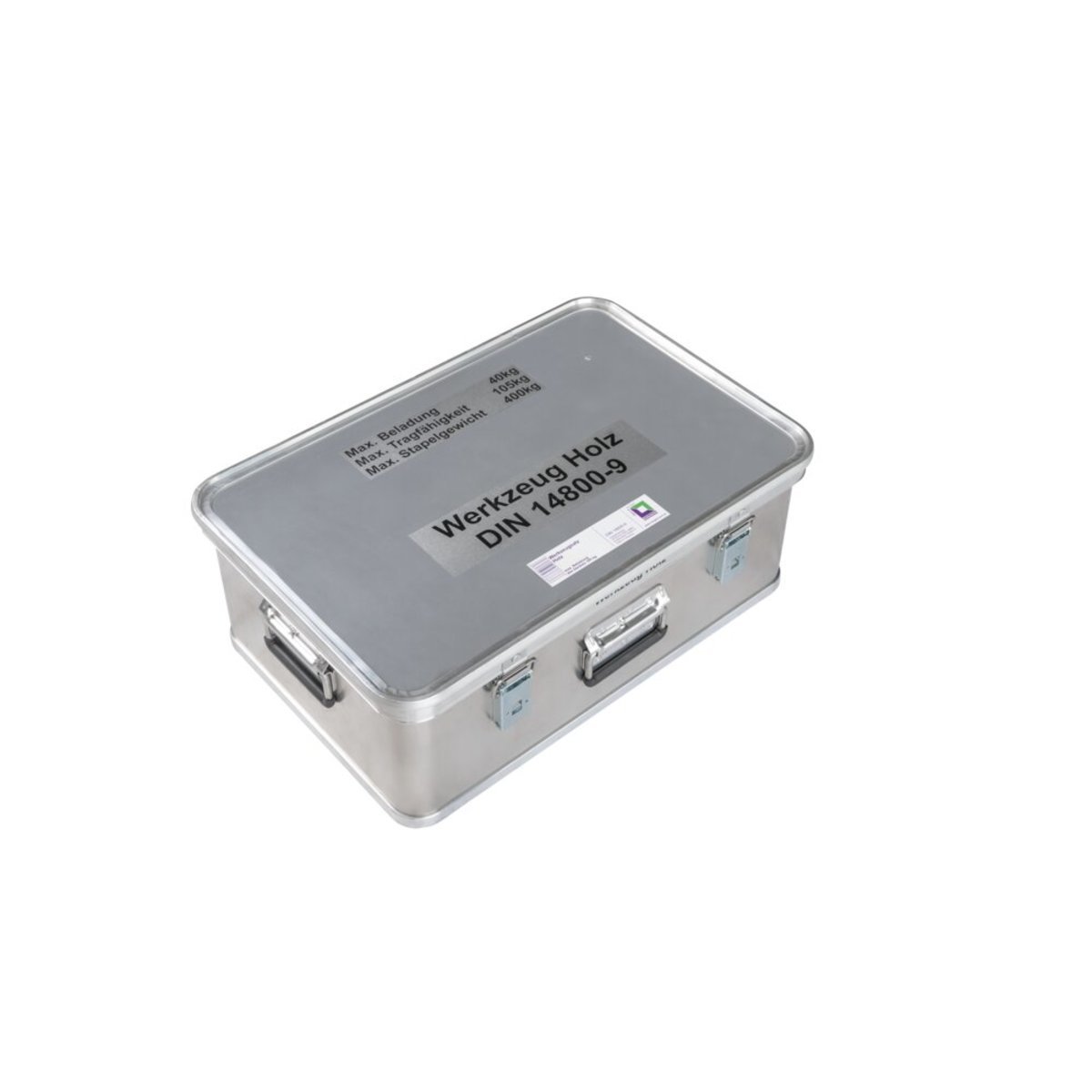 Kasten mit Trennsystem und Beschriftung "Werkzeugsatz Holz" Größe 3