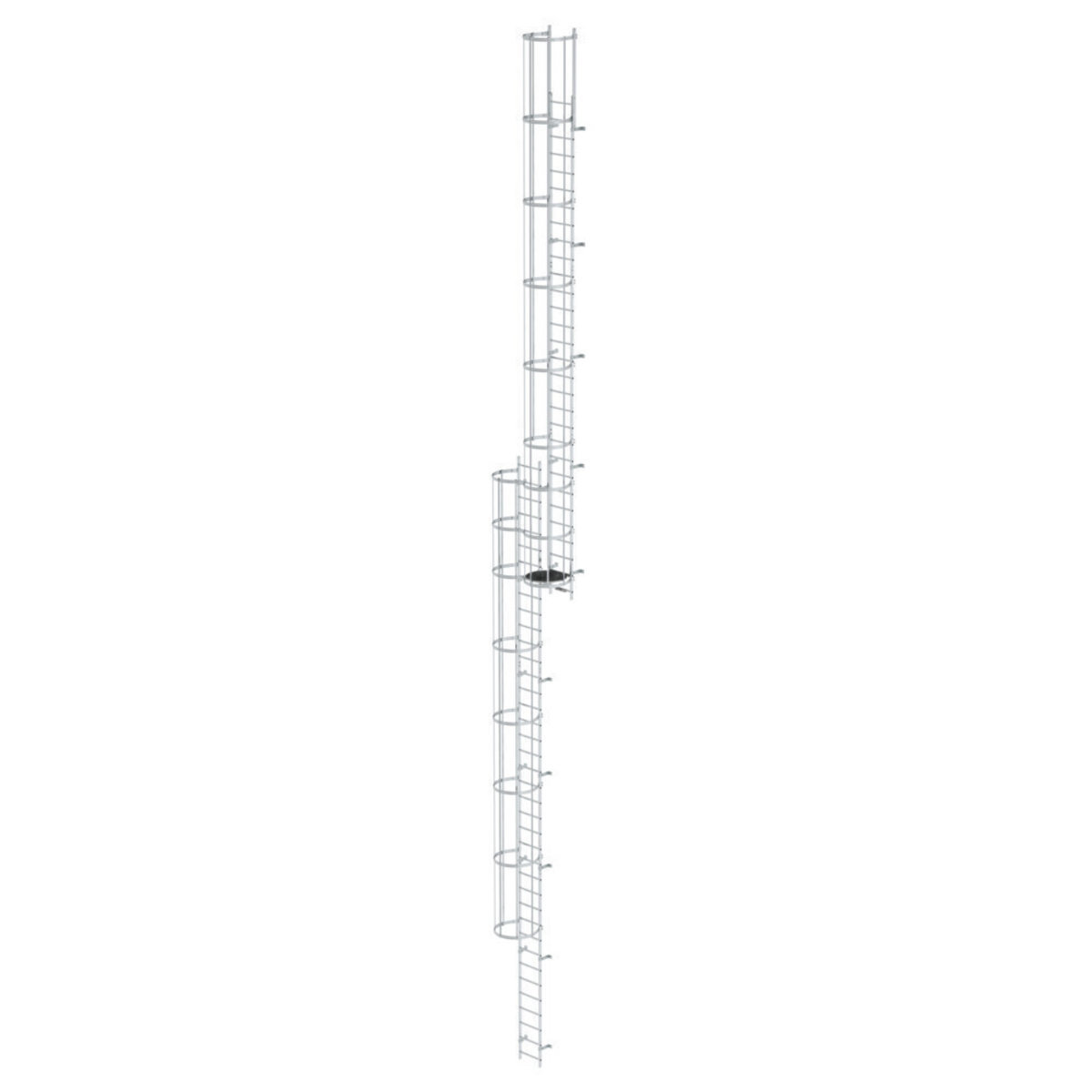 Mehrzügige Steigleiter mit Rückenschutz (Bau) Aluminium blank