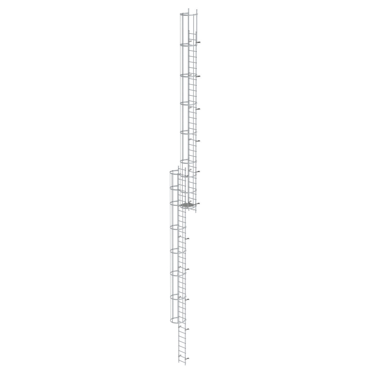 Mehrzügige Steigleiter mit Rückenschutz (Bau) Aluminium eloxiert