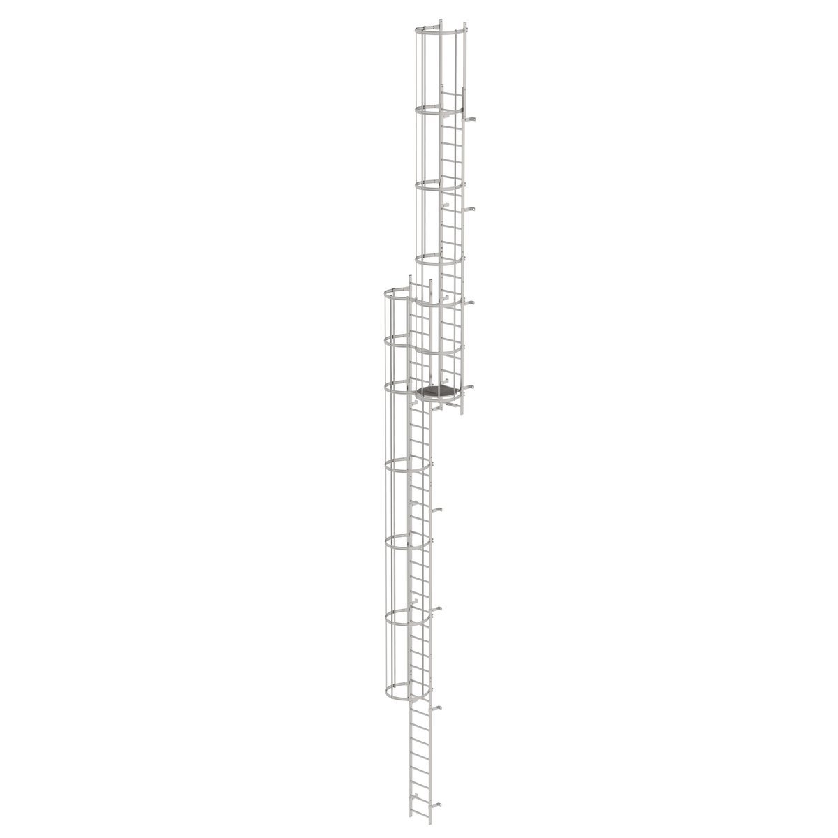 Mehrzügige Steigleiter mit Rückenschutz (Bau) Edelstahl