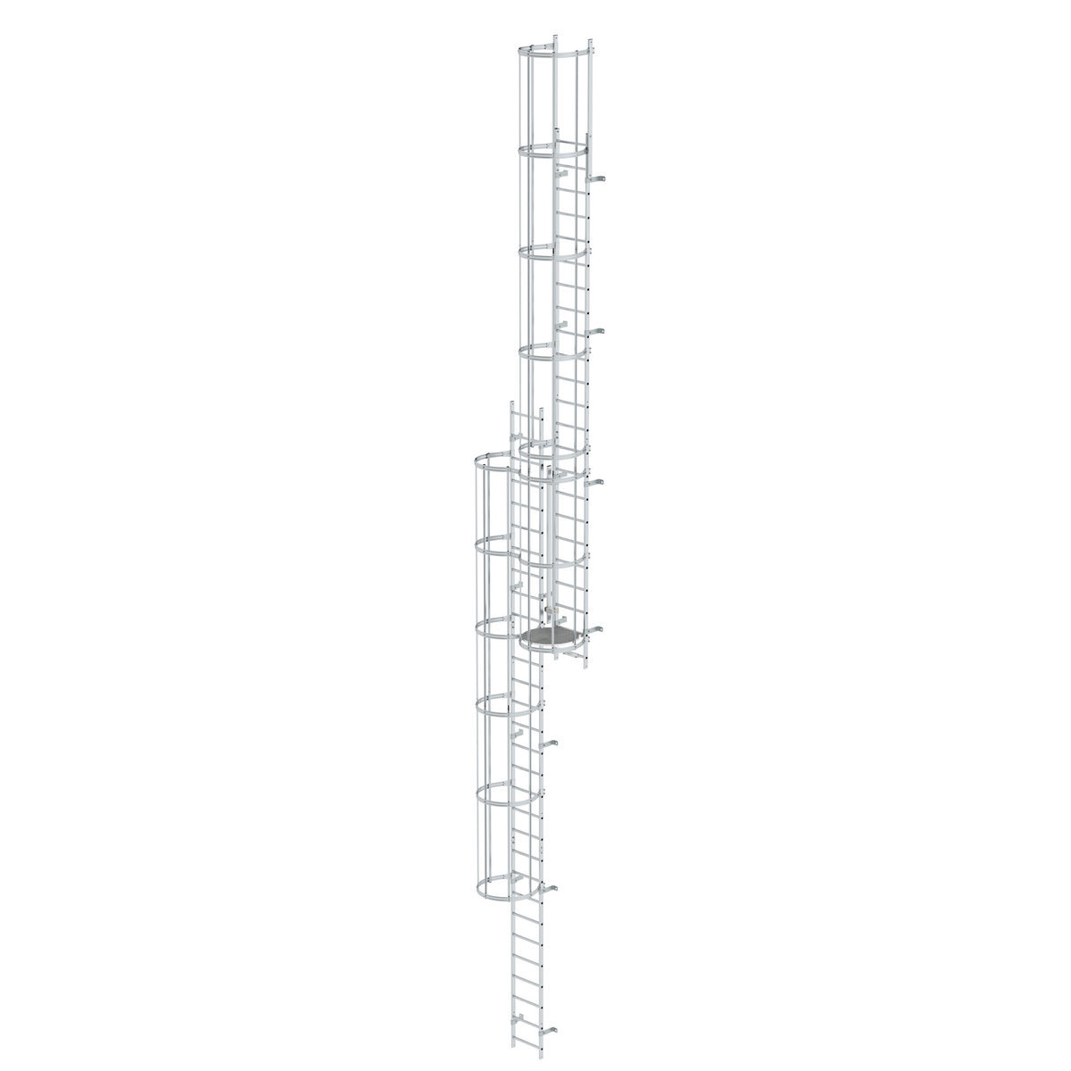 Mehrzügige Steigleiter mit Rückenschutz (Maschinen) Aluminium blank