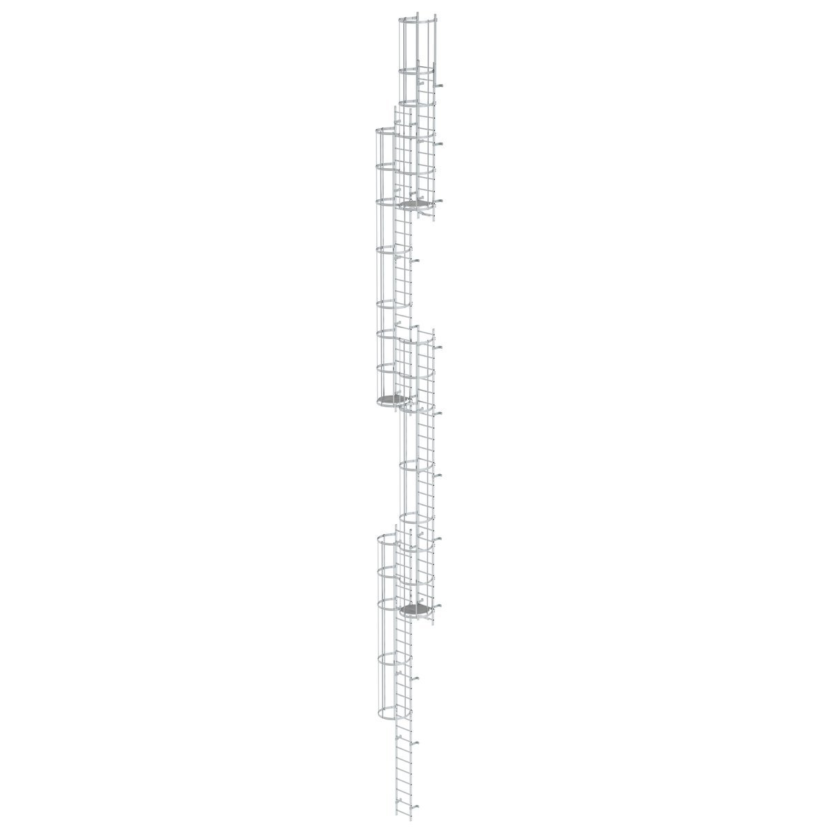 Mehrzügige Steigleiter mit Rückenschutz (Notleiter) Aluminium blank