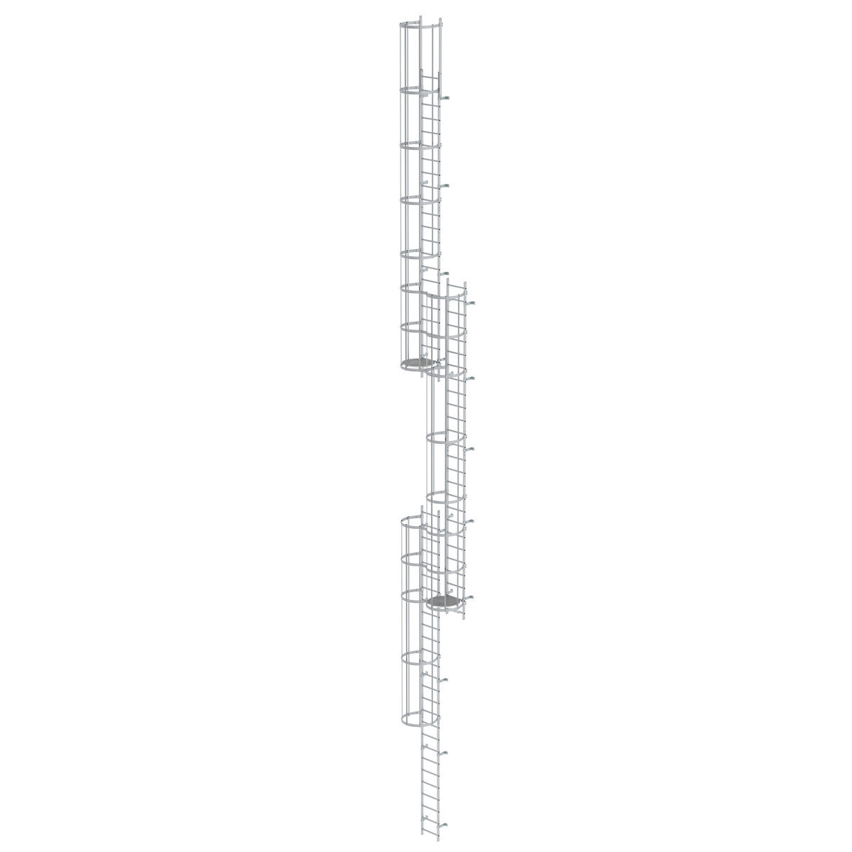 Mehrzügige Steigleiter mit Rückenschutz (Notleiter) Aluminium eloxiert