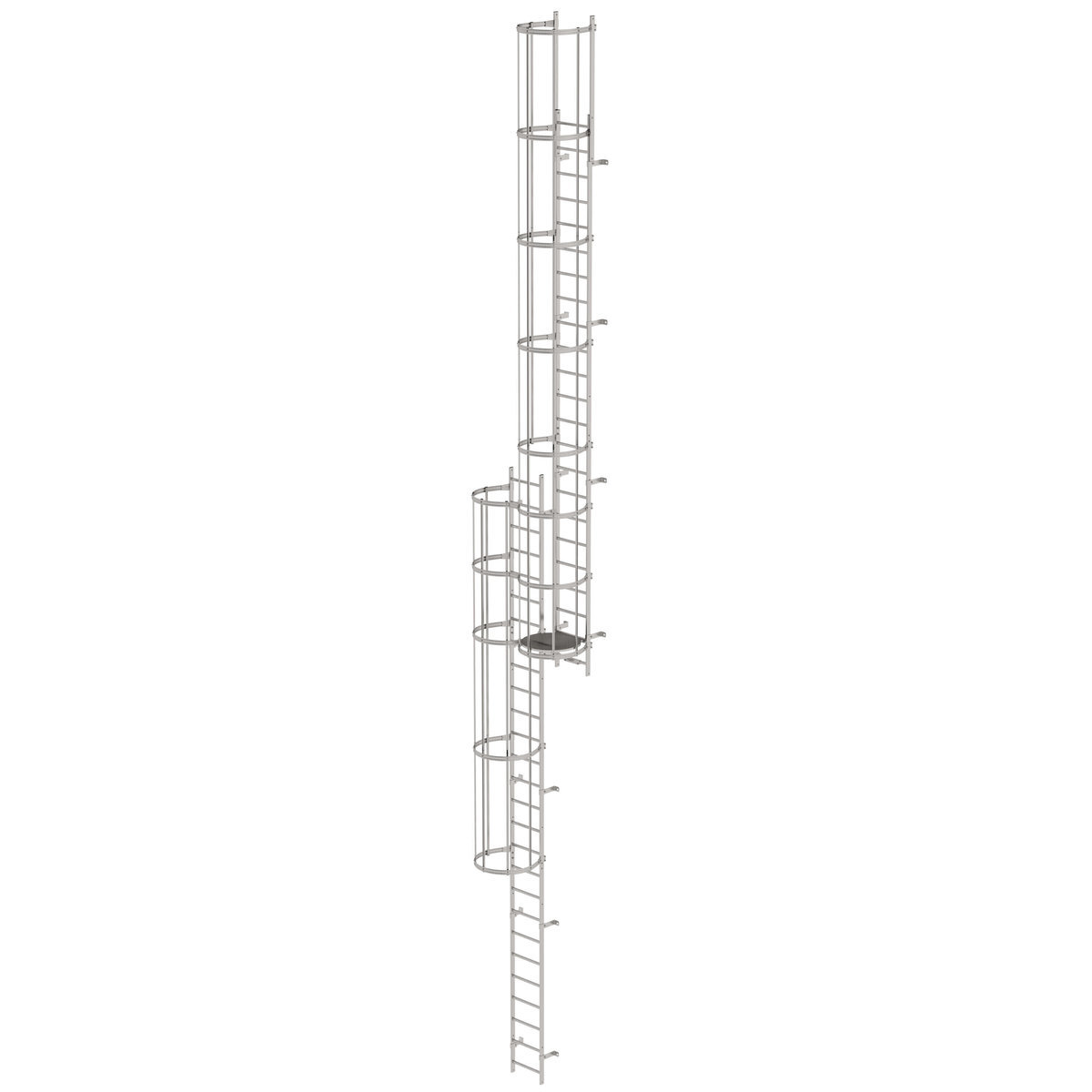 Mehrzügige Steigleiter mit Rückenschutz (Notleiter) Edelstahl