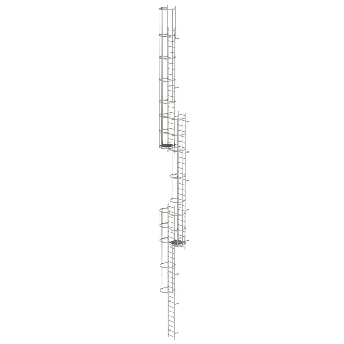 Mehrzügige Steigleiter mit Rückenschutz (Notleiter) Edelstahl