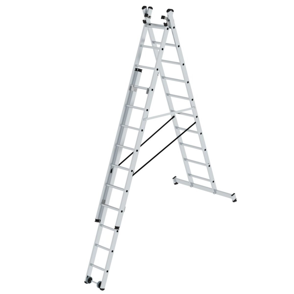 Mehrzweckleiter 3-teilig mit nivello®-Traverse und Wandlaufrollen
