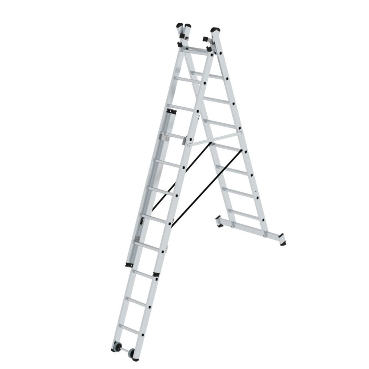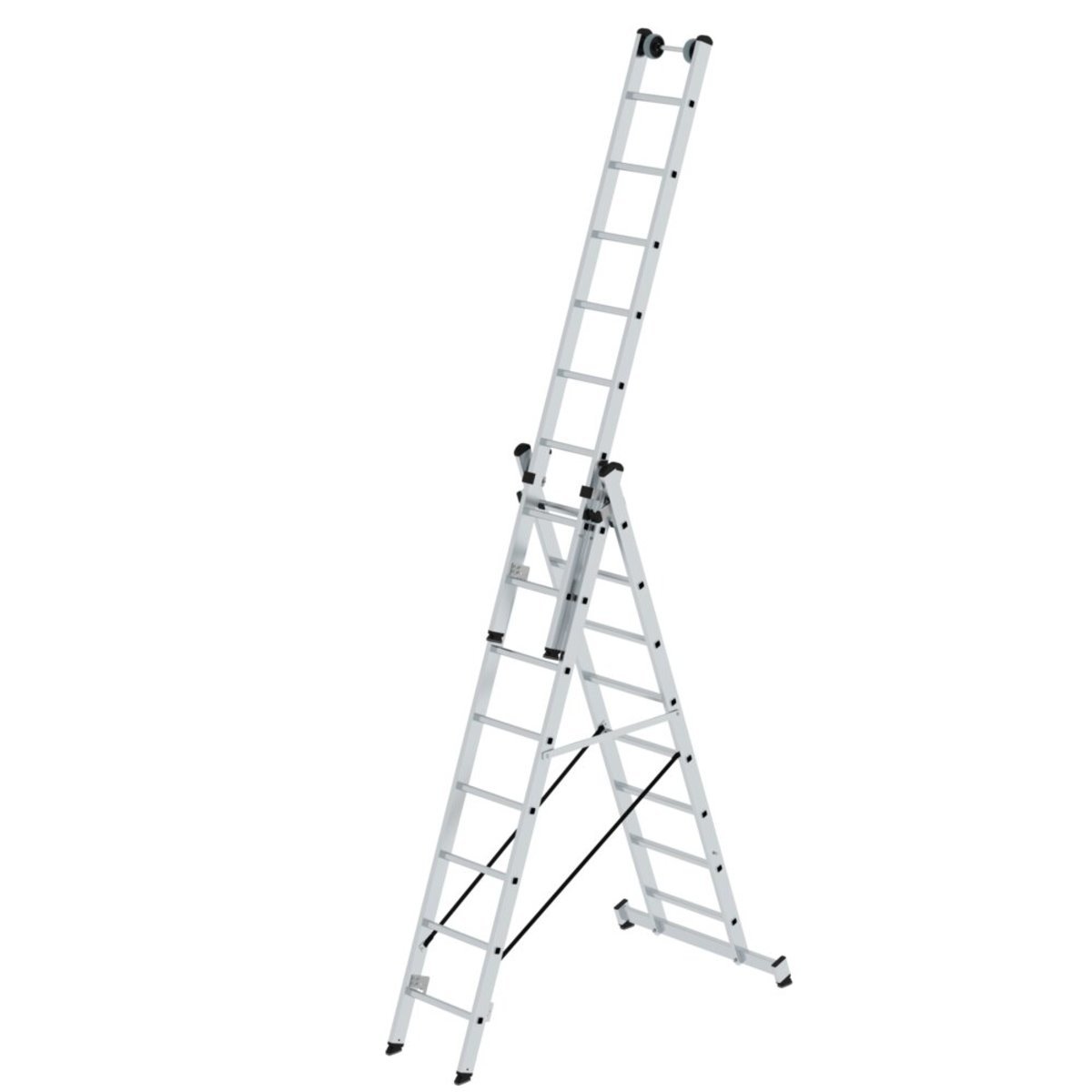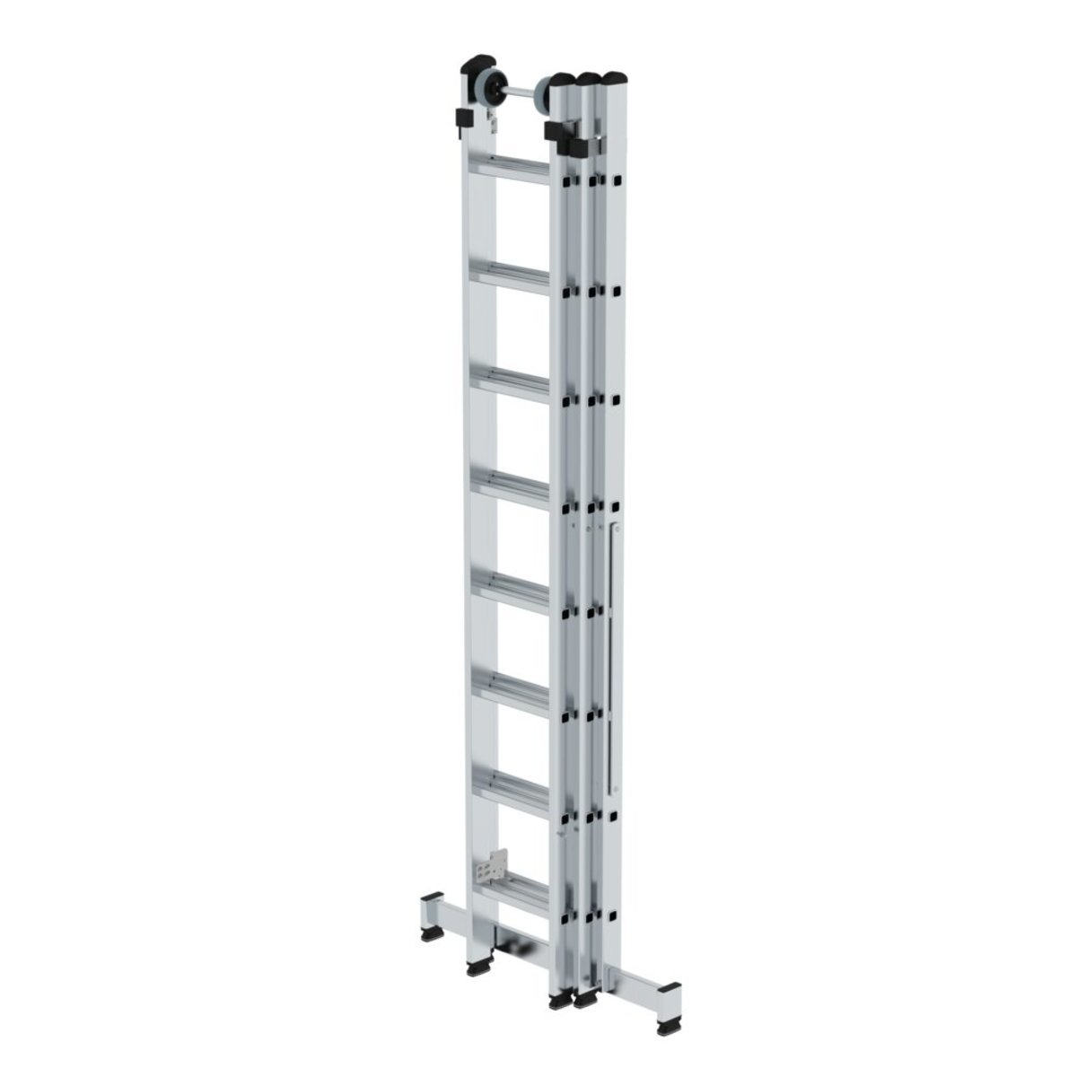 Mehrzweckleiter 3-teilig mit nivello®-Traverse und Wandlaufrollen