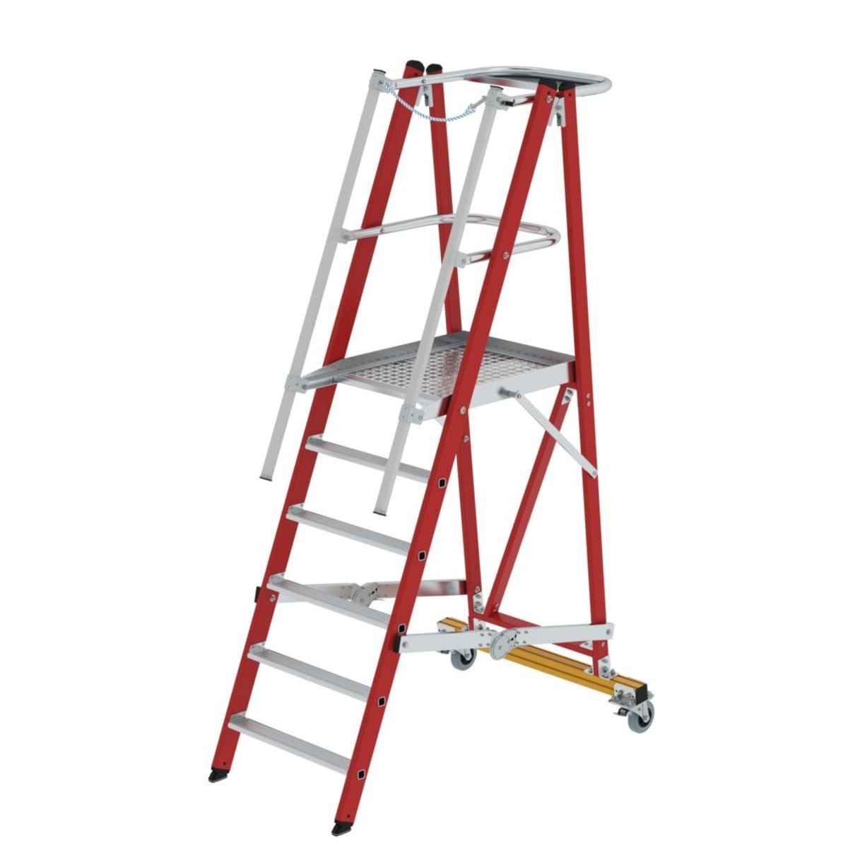 Plattformleiter GFK/Alu klappbar und fahrbar mit GFK-Handlauf