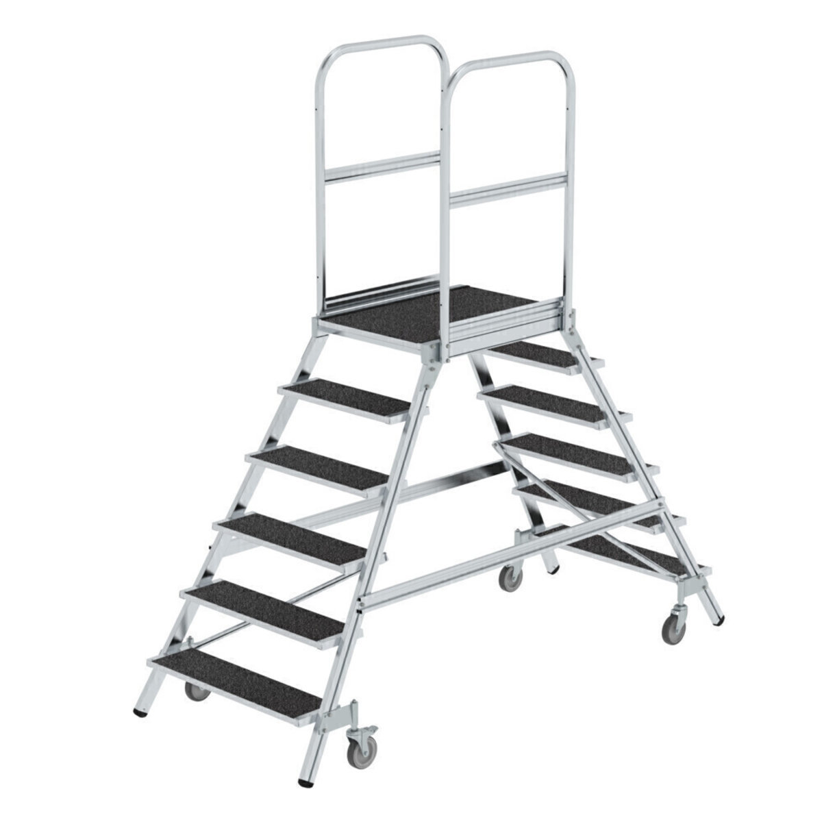 Podesttreppe beids. begehbar mit Federrolle Korundbeschichtung R13