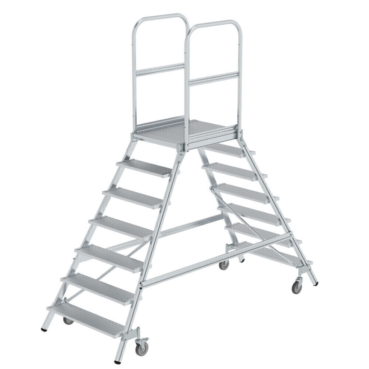 Podesttreppe beidseitig begehbar mit Federrollen Aluminium geriffelt