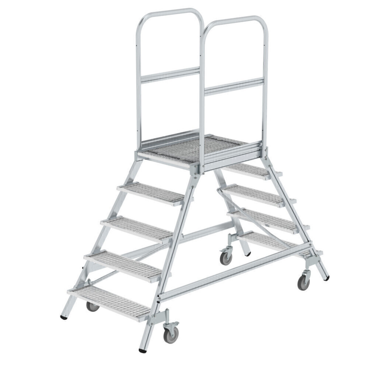 Podesttreppe beidseitig begehbar mit Federrollen Stahl Gitterrost