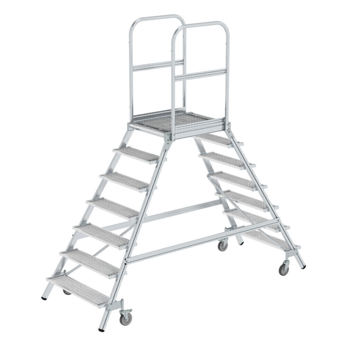 Podesttreppe beidseitig begehbar mit Federrollen Stahl Gitterrost