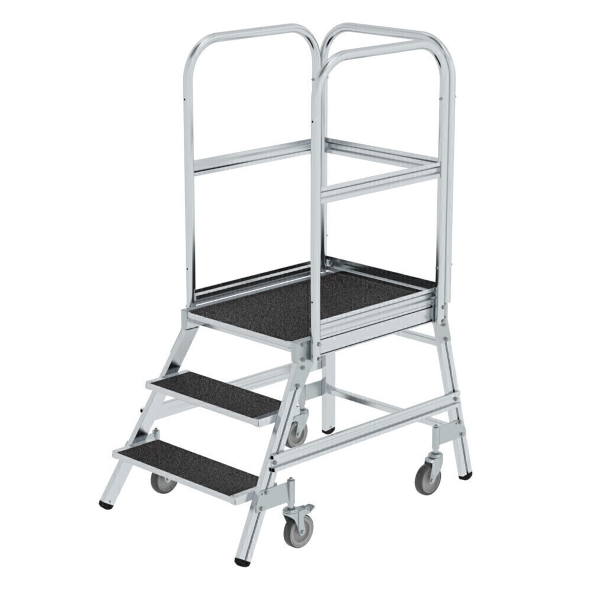 Podesttreppe eins. begehbar mit Federrollen Korundbeschichtung R13