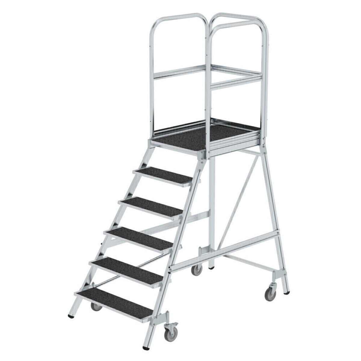 Podesttreppe eins. begehbar mit Federrollen Korundbeschichtung R13
