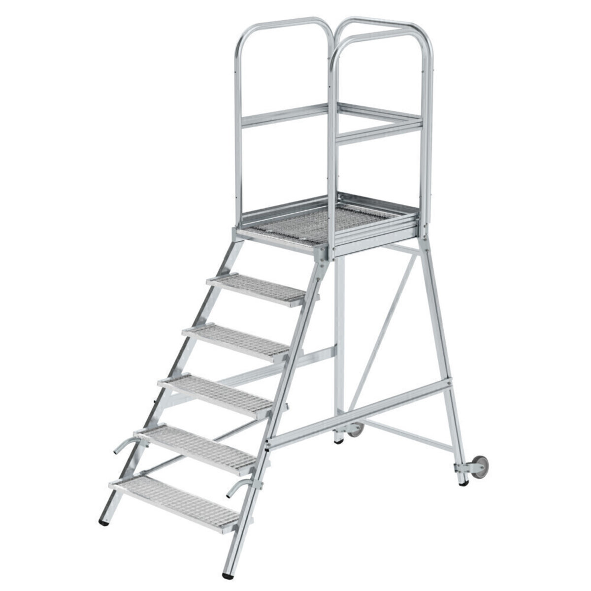 Podesttreppe eins. begehbar mit Rollen und Griffen Stahl-Gitterrost