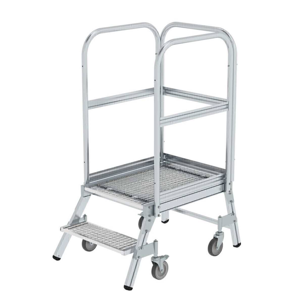 Podesttreppe einseitig begehbar mit Federrollen Stahl-Gitterrost