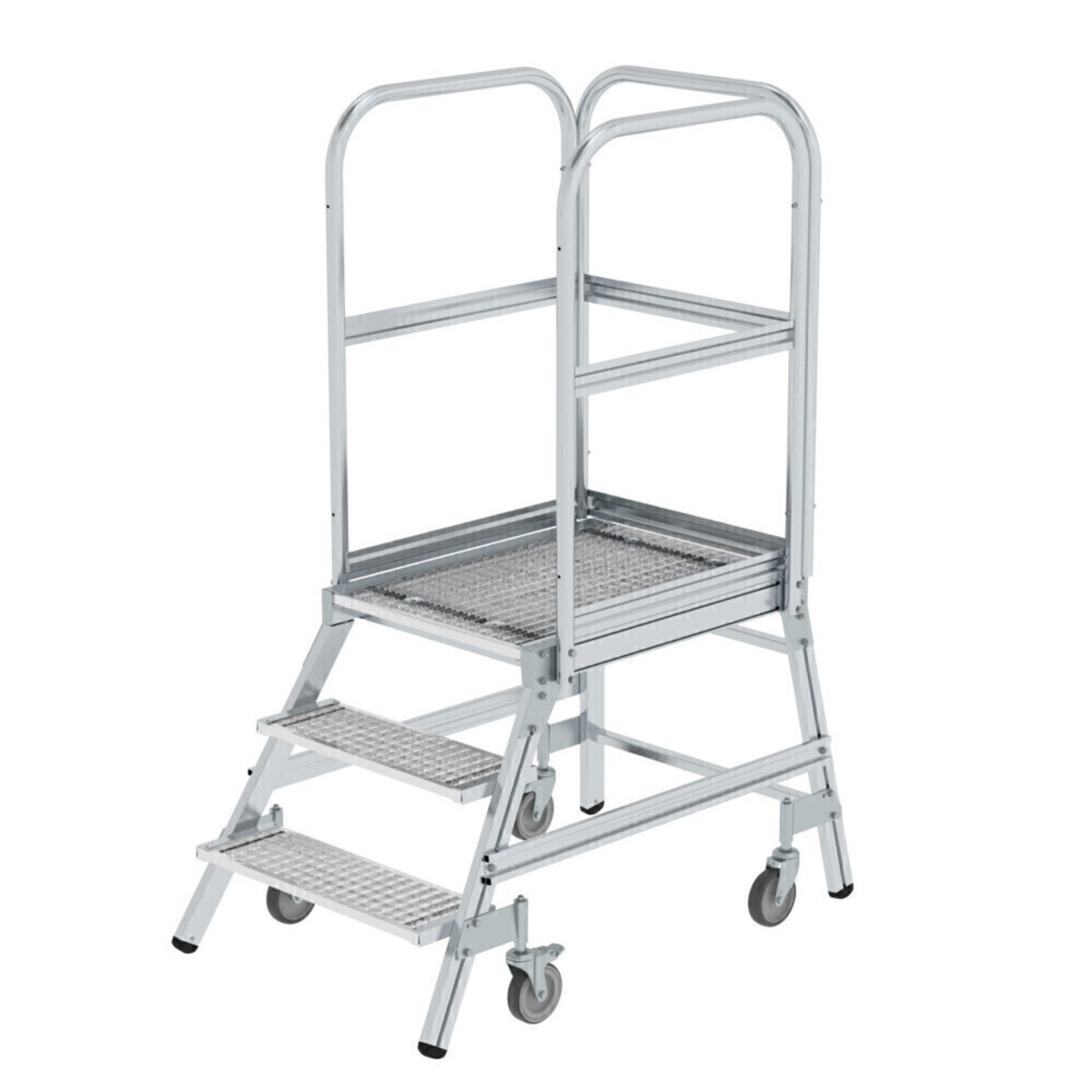 Podesttreppe einseitig begehbar mit Federrollen Stahl-Gitterrost