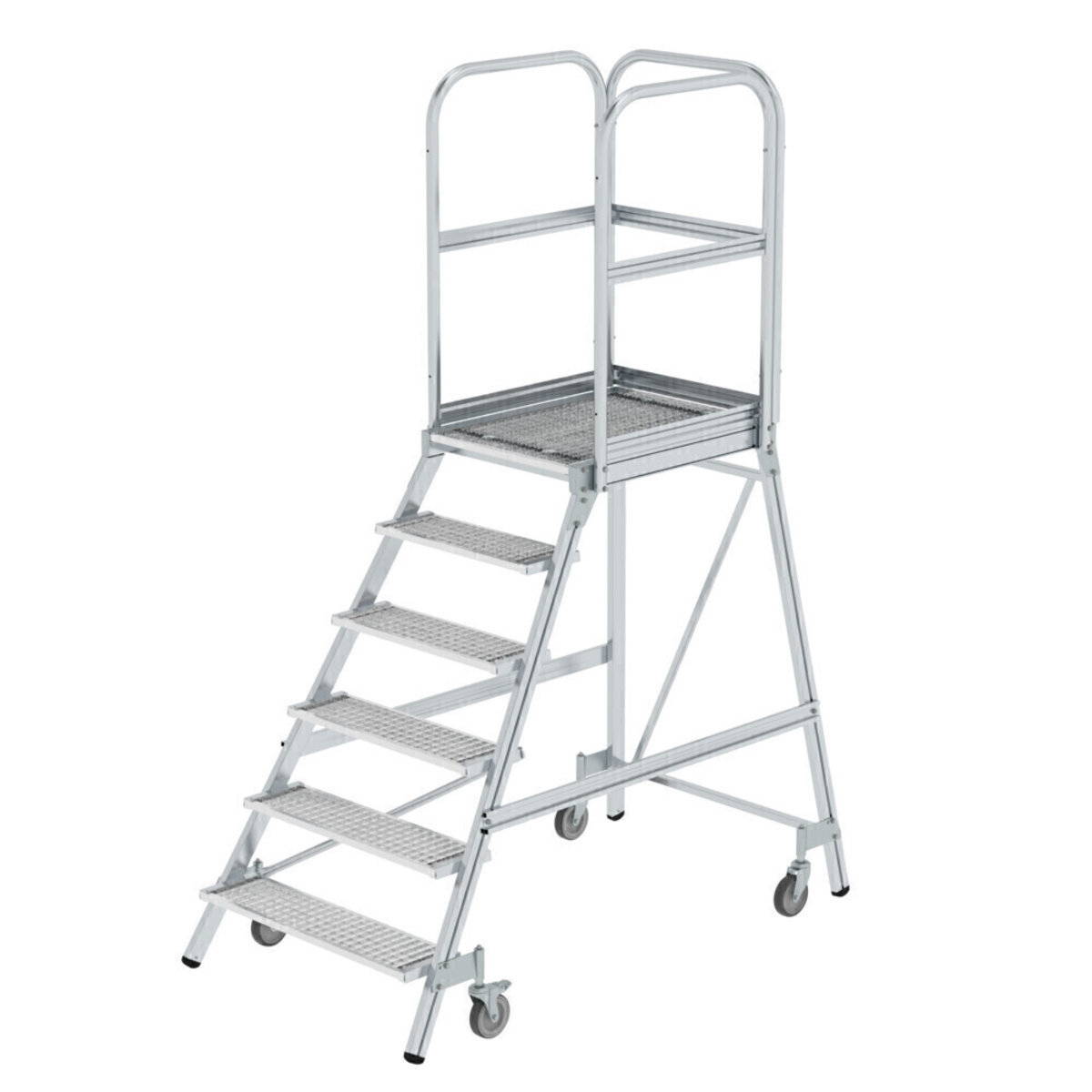 Podesttreppe einseitig begehbar mit Federrollen Stahl-Gitterrost