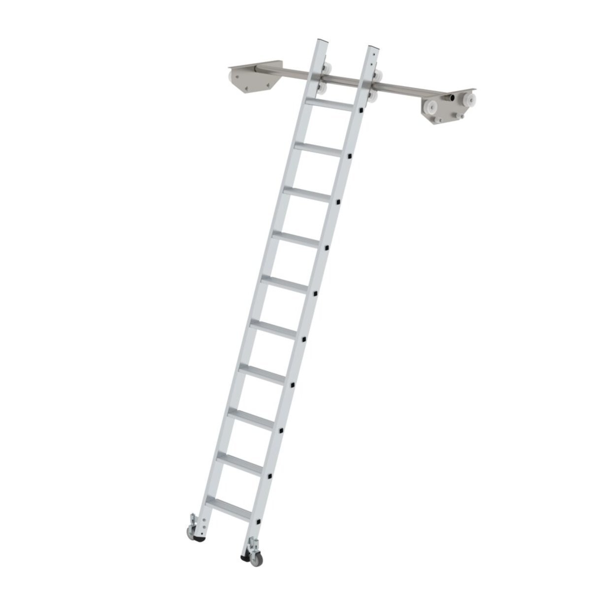 Stufen-Regalleiter fahrbar für Doppelregal