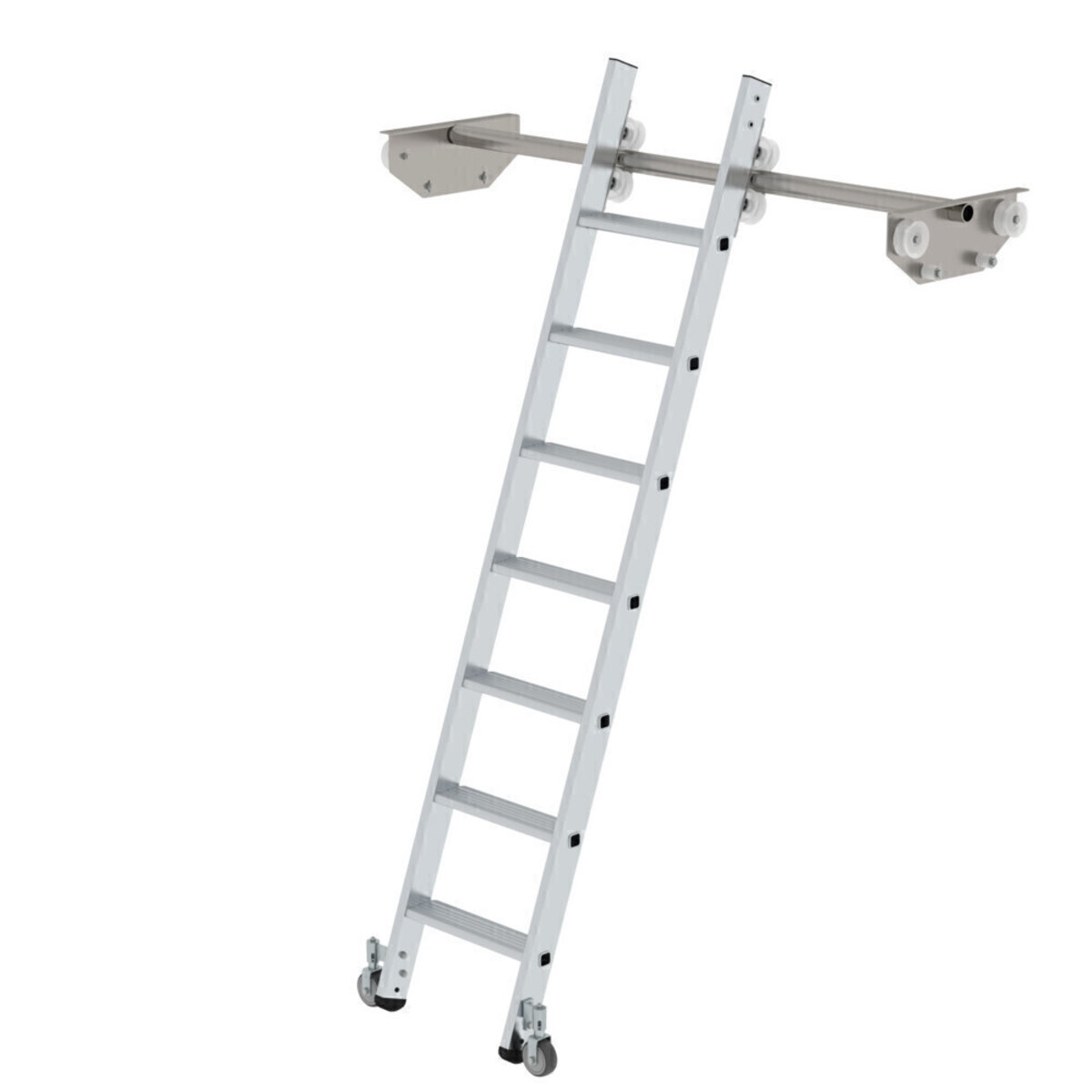 Stufen-Regalleiter fahrbar für Doppelregal