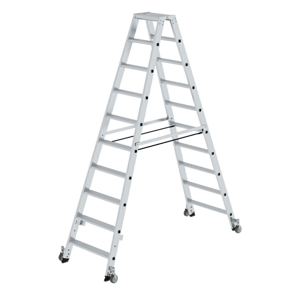Stufen-Stehleiter beidseitig begehbar mit Rollen