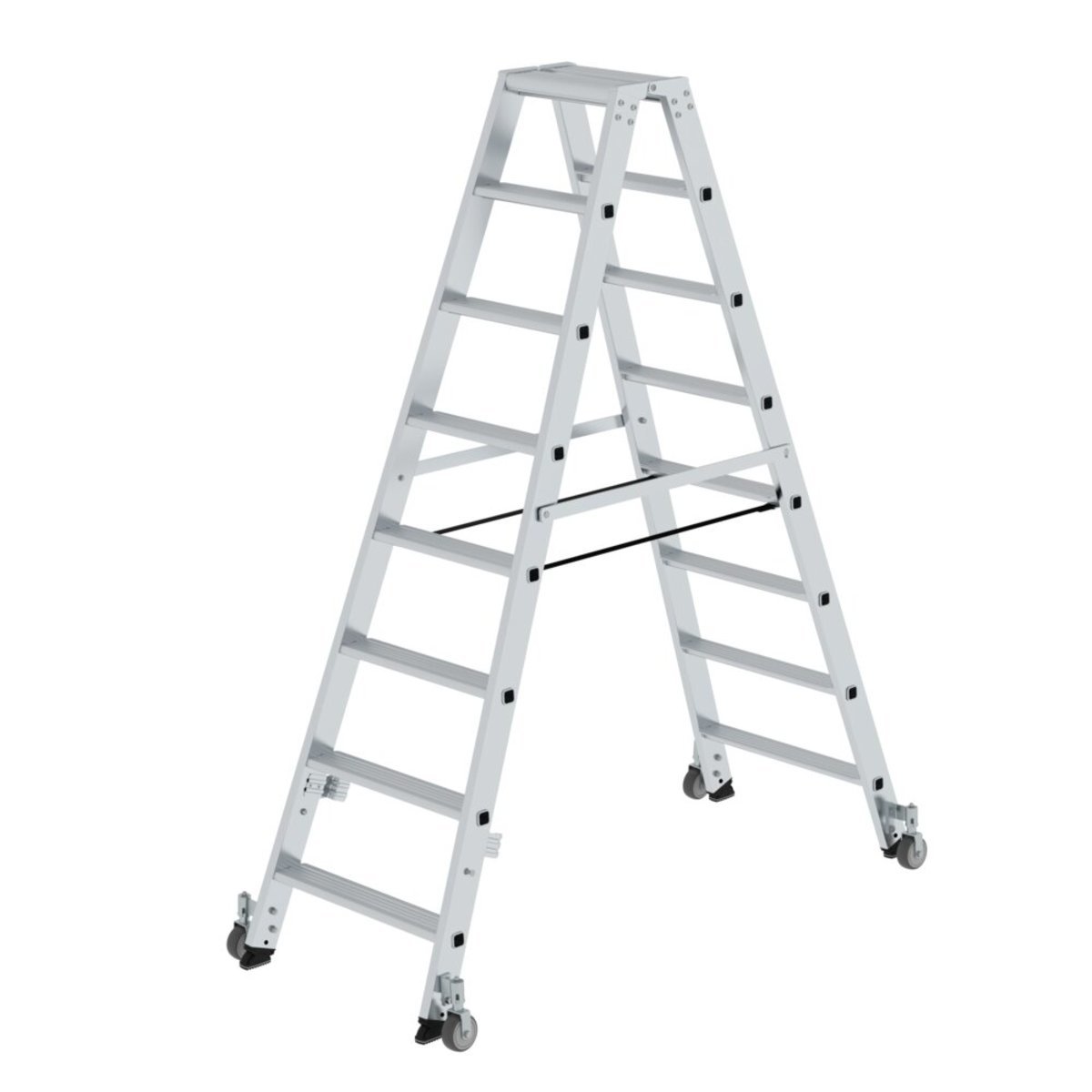 Stufen-Stehleiter beidseitig begehbar mit Rollen