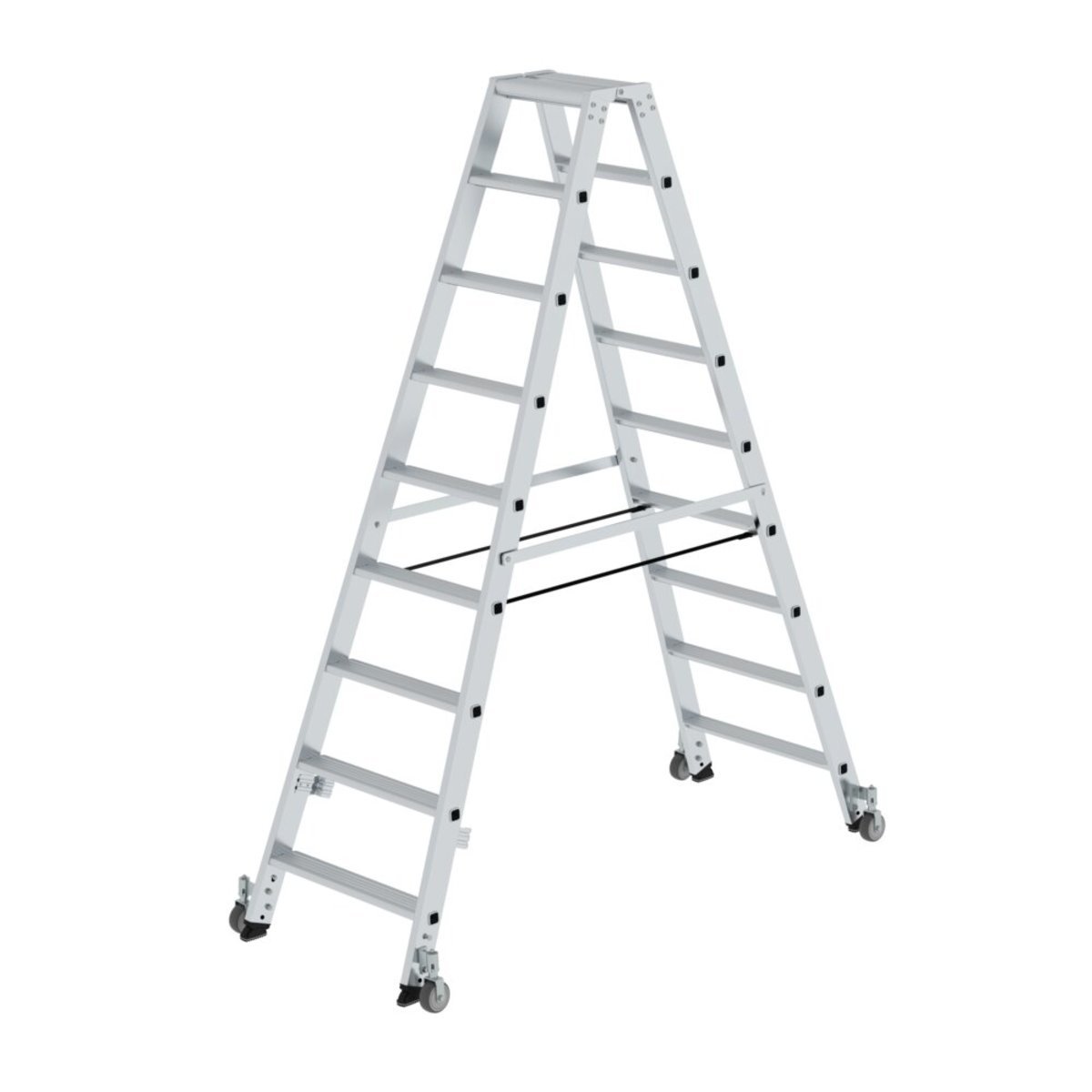 Stufen-Stehleiter beidseitig begehbar mit Rollen
