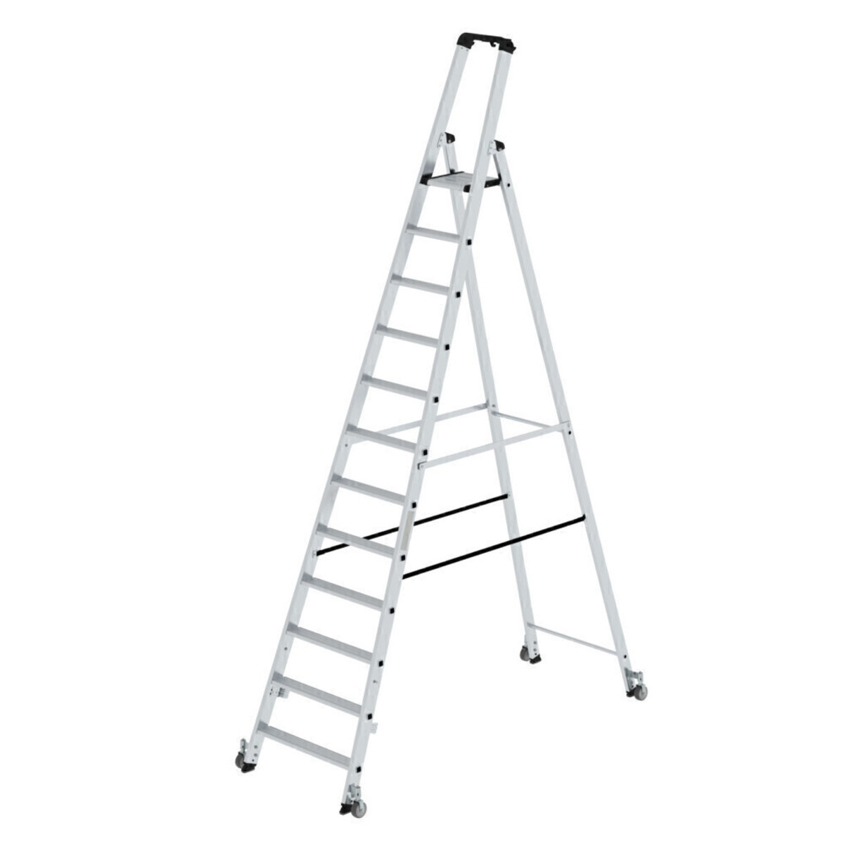 Stufen-Stehleiter einseitig begehbar mit Rollen