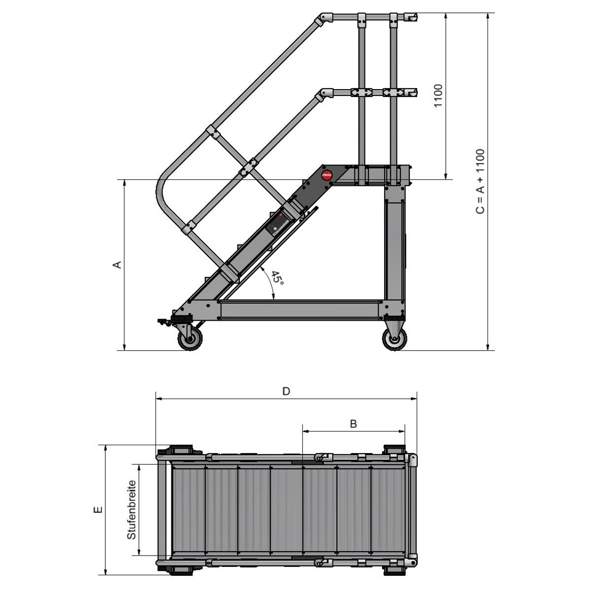 Plattformtreppe fahrbar 45°, Stufenbreite 1000 mm