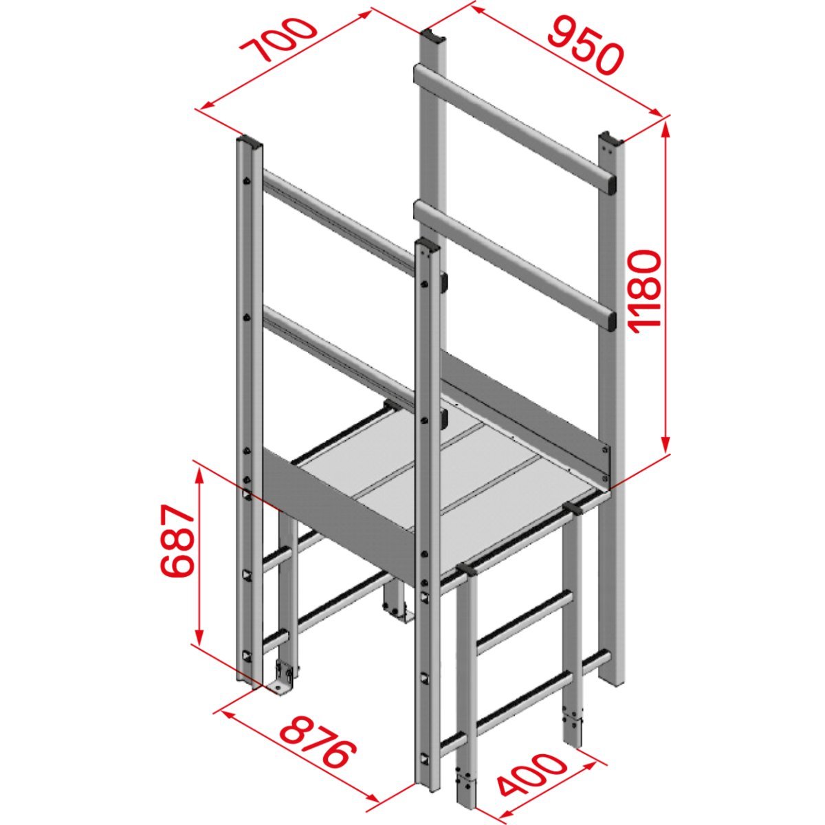 · Plattformbelag Aluminium gerieft, geschlossen.