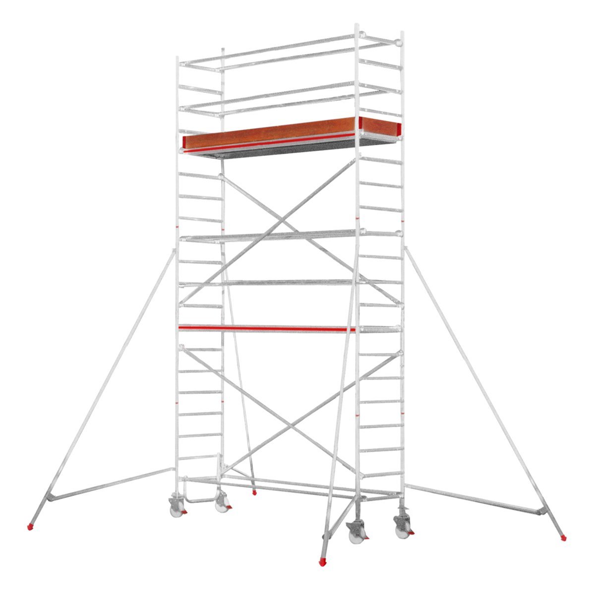 ∙ Schneller Auf- und Abbau durch massive Klickverschlüsse an Streben und Diagonalen und Verwendung einer Bühne je Etage.