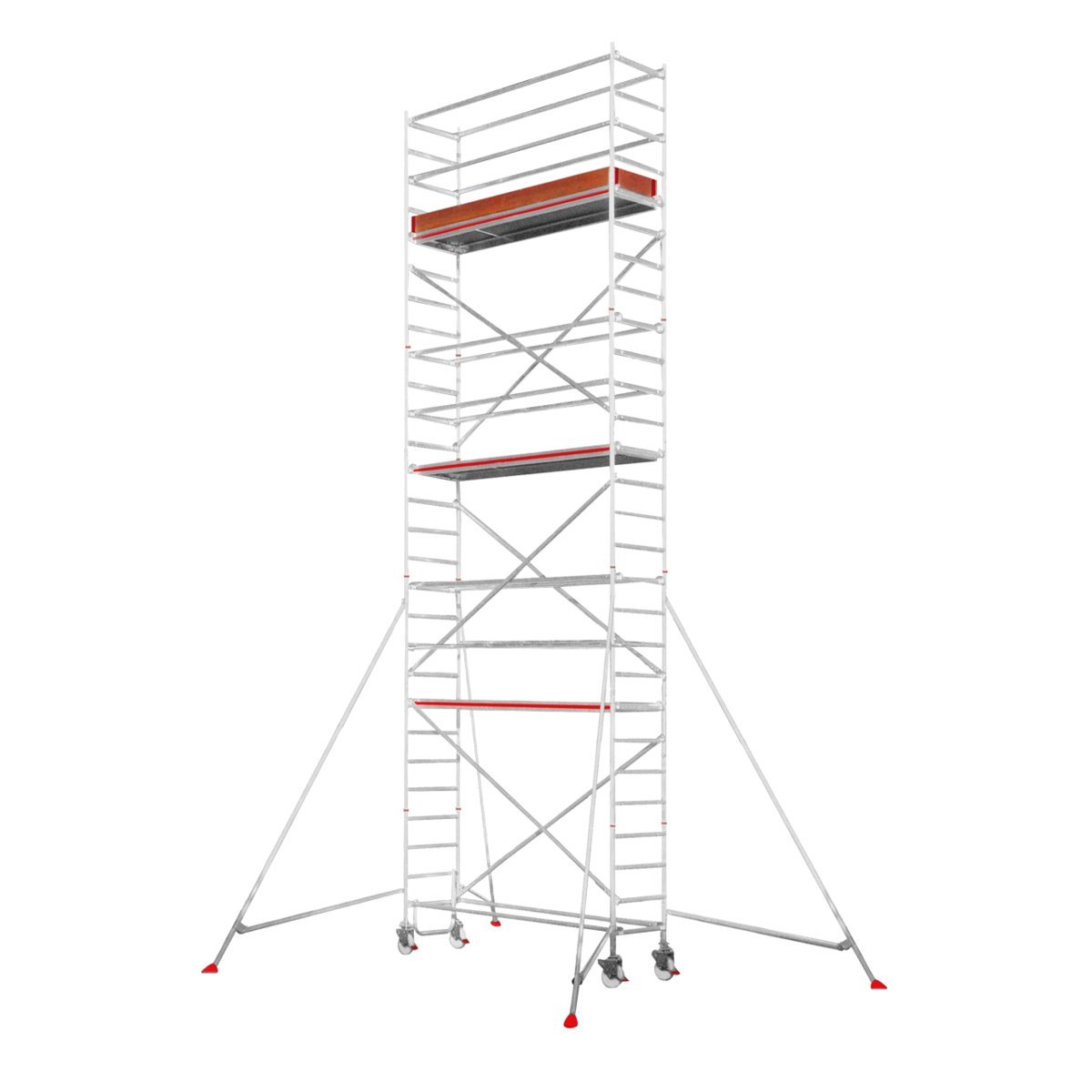 ∙ Schneller Auf- und Abbau durch massive Klickverschlüsse an Streben und Diagonalen und Verwendung einer Bühne je Etage.