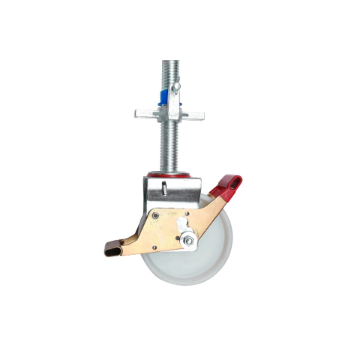 ∙ Inkl. 4 höhenverstellbarer Lenkrollen (Ø 200 mm) für den Ausgleich von Bodenunebenheiten.