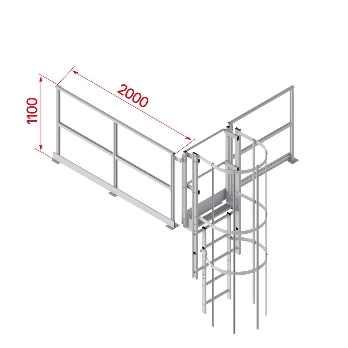 · Für die normkonforme Verwendung nach DIN 18799-3 muss in Ausstiegsrichtung das 2.000 mm-Geländer (Best.-Nr. 0055534) verwendet werden.