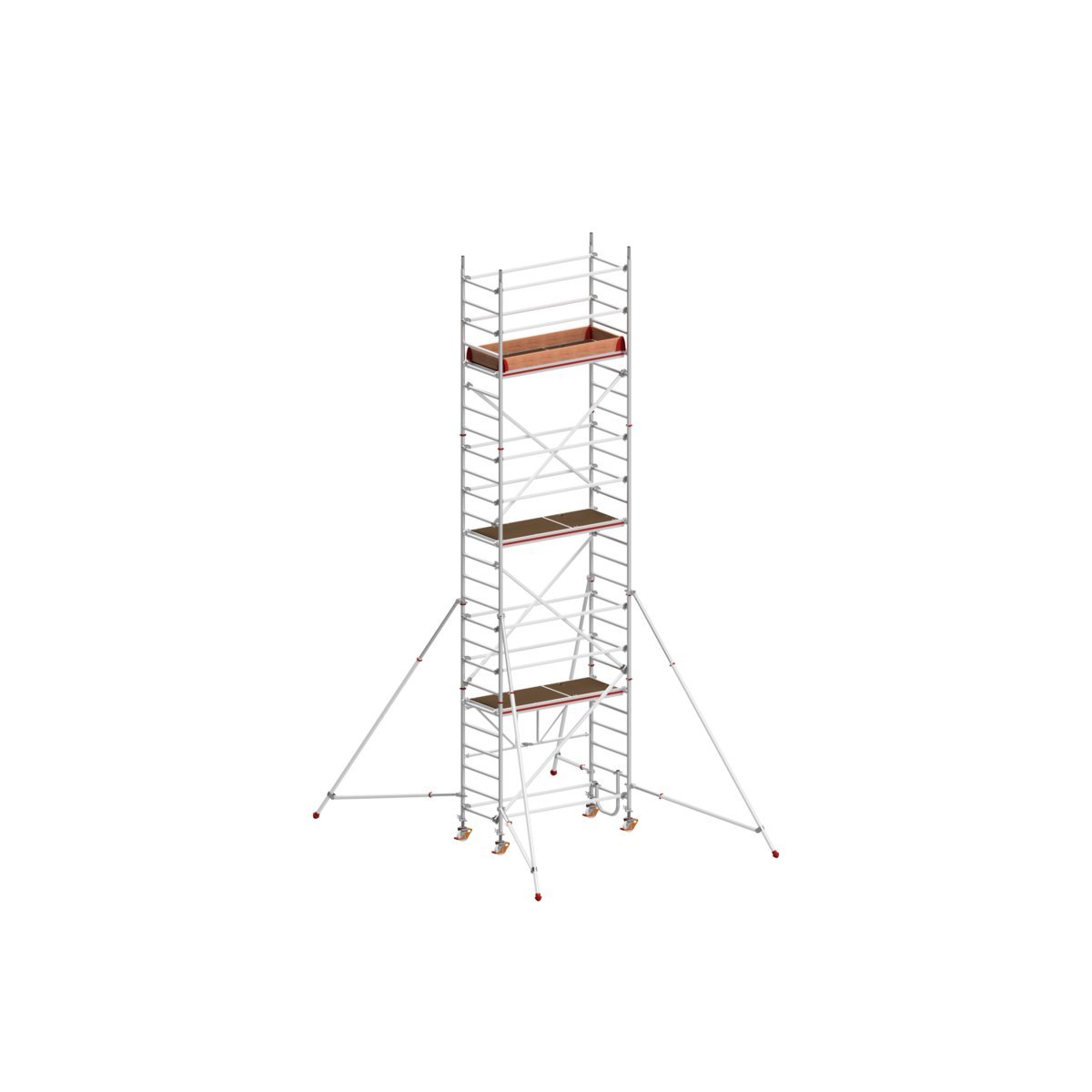 Das Klappgerüst 8177 ist je nach Einsatzbereich modular erweiterbar: als ingliedriges Fahrgerüst von der kleinsten Einheit mit Reichhöhe 2,80 m bis hin zu einer Konstruktion mit Reichhöhe 8,75 m. Die Bauteile lassen sich ohne Werkzeuge zum Gerüst zusammensetzen. Unabhängig davon, wie viele zusätzliche Teile beim Anbau benötigt werden, sind die Hymer-Fahrgerüste mit Sicherheitsaufbau sehr stabil. Der robuste Aufbau und die geräumige Bühne ermöglichen sicheres und ergonomisches Arbeiten auch bei maximaler Gerüsthöhe. Dazu tragen die speziell vom Hersteller entwickelten, patentierten Bajonett-Ausleger bei. Die Ausleger sind ab einer Reichhöhe von 4,57 m im Lieferumfang verpflichtend enthalten.